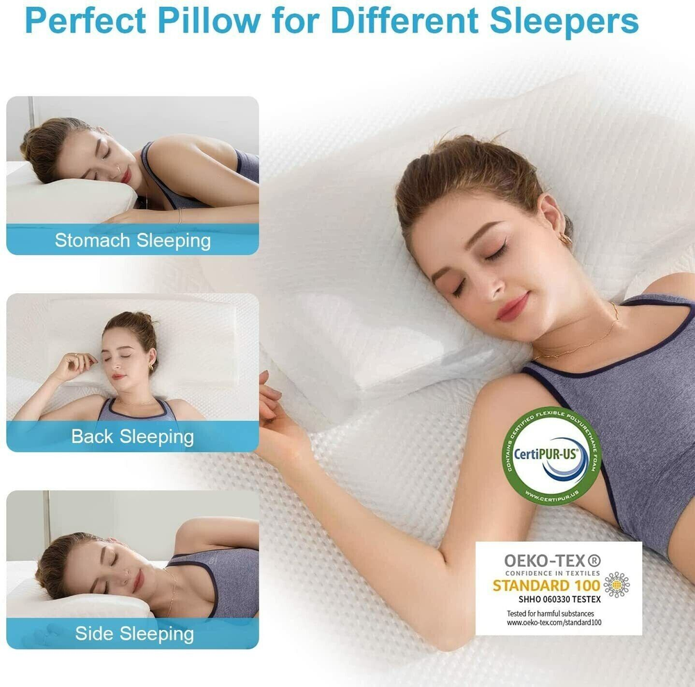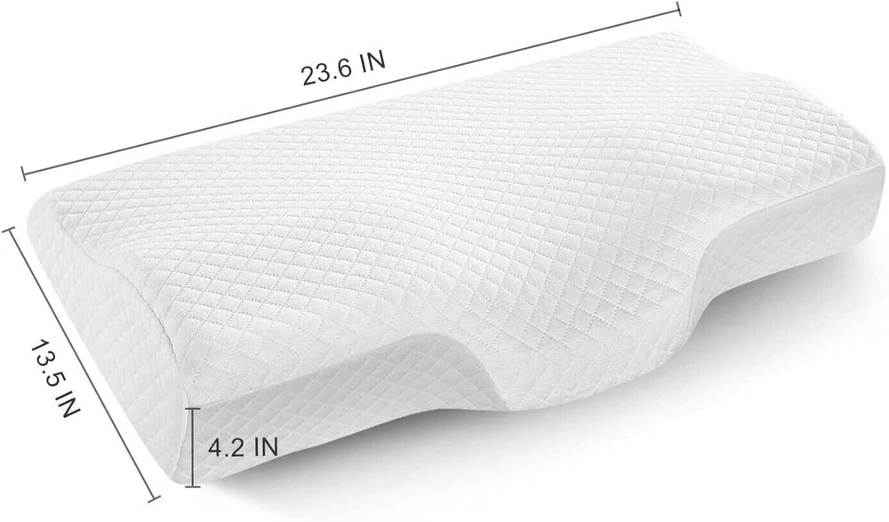 eBay PRODUCTS DESCRIPTION EY/25 Cervical Memory Foam Pillow, Orthopedic Pillows for Neck Pain, Ergonomic Pillows for Sleeping, Contour Pillows for Side, Back and Stomach Sleepers Neck Support Pillows for Shoulder Pain Relief Color : White Shape:Rectangular Size:23.6*13.5*4.2 inch Material:Memory Foam About this item ღ【Cervical Memory Foam Pillow】 Cervical pillows are well ergonomically designed to support by following the natural curve of your body keeps air passages optimal for less snoring and more restful sleep. The cutouts on the side give your top arm a place to rest and keep it at an angle so your shoulder is not hunching over in front of you. ღ【Pillow for Side Sleep】 Perfect for Side, Back and Stomach Sleepers, have 2 neck support levels for supporting your neck naturally which provide a custom fit to satisfy all position sleepers while allowing for smoother breathing and comfortable sleep. No more snoring, no more neck aches in the morning. ღ【Washable Cover】 Removable and washable zipper pillowcase, support machine washing, soft and sanitary, hang it dry. Do not machine the pillow directly. Do not use bleach. ღ【Perfect Health Care Gift】 Our cervical pillow is very suitable for the elders, officers, students, IT, and those who suffer from sleep issues. Perfect careful gift to your concerned people. ღ【No Worries Purchase】 After receiving item, please place it in the air for about 24 hours to fully rebound. For any quality-related issues (Covers, Zippers and so on) connect us immediately, we will send you a replacement for free!