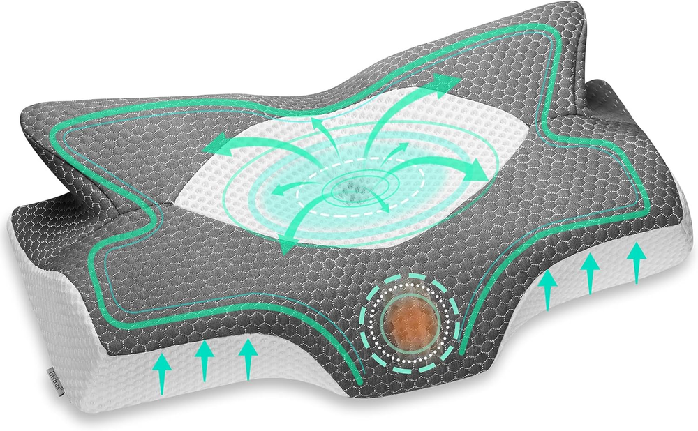 TWO FIRMNESS OPTIONS: This is the old version--It has an overall softer feel, which differs from the 2022 version. If you prefer a softer pillow, you can choose the Polyurethane option. To meet the needs of a broader range of users, we have also introduced an upgraded, firmer option—select the Memory Foam option. ERGONOMIC DESIGN: Elviros ergonomic pillows are well designed to support by following the natural curve of your body keeps air passages optimal for less snoring and more restful sleep. The cutouts on the side give your top arm a place to rest and keep it at an angle so your shoulder is not hunching over in front of you. TWO HEIGHTS---DESIGNED FOR BACK & SIDE SLEEPING: SIZE 25.2Lx15Wx(4.1"-4.9")H, Back sleepers with cervical issues can sleep on the higher side (4.9inch) of the pillow with 2 horns as this side provides better support for the head and cervical, so as to keeps your neck properly aligned with the rest of your body. The neck support pillow is suitable for different sleeping positions: back, stomach and side sleeping. PREMIUM MEMORY FOAM PILLOW: The Elviros pillow core has been upgraded based on popular feedback and it's firmer than traditional pillow and softer than latex pillow. But if you prefer sleeping on extra firm pillows, we recommend visiting our store to explore other styles. NOTE: THE MEMORY FOAM ITSELF WILL HAVE A VERY LIGHT SMELL, IF YOU ARE UNACCEPTABLE, PLEASE VENTILABLE IT FOR 3-15 DAYS. REMOVABLE BREATHABLE PILLOWCASE: The Elviros neck pillow features ice-silk fabric that improves breathability, providing a cooler and more comfortable sleep experience. Certified by Oeko-Tex for safety and quality, the pillowcase is both skin-friendly and durable, offering lasting comfort all night long. NOTE: THE PACKAGE BOX YOU RECEIVE WILL BE WRAPPED WITH TAPE AT THE SEAL, WHICH IS NOT USED PRODUCTS, BUT ADDED FOR BETTER FIXING AND ENSURING THE INTEGRITY OF THE PRODUCTS INSIDE. Product Description