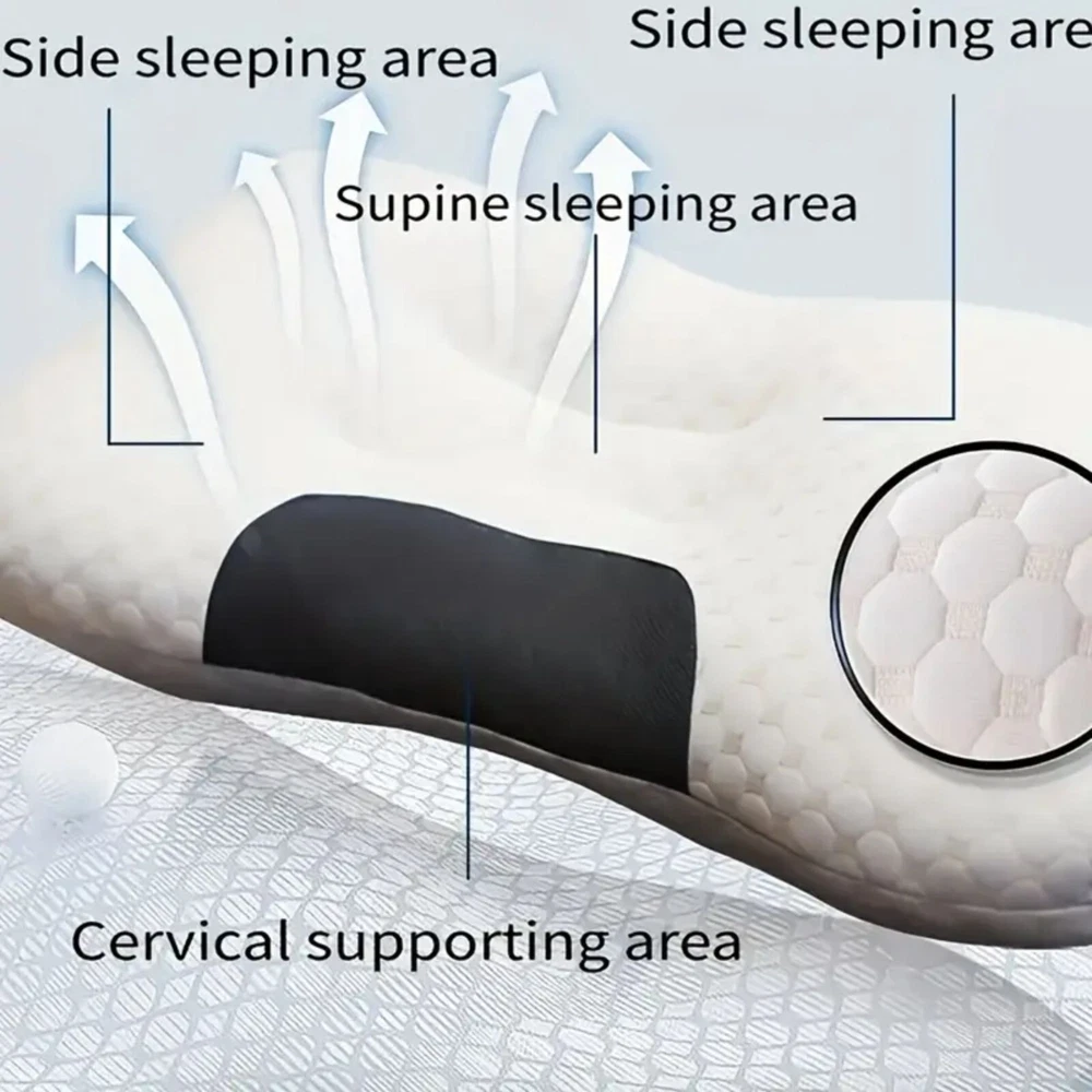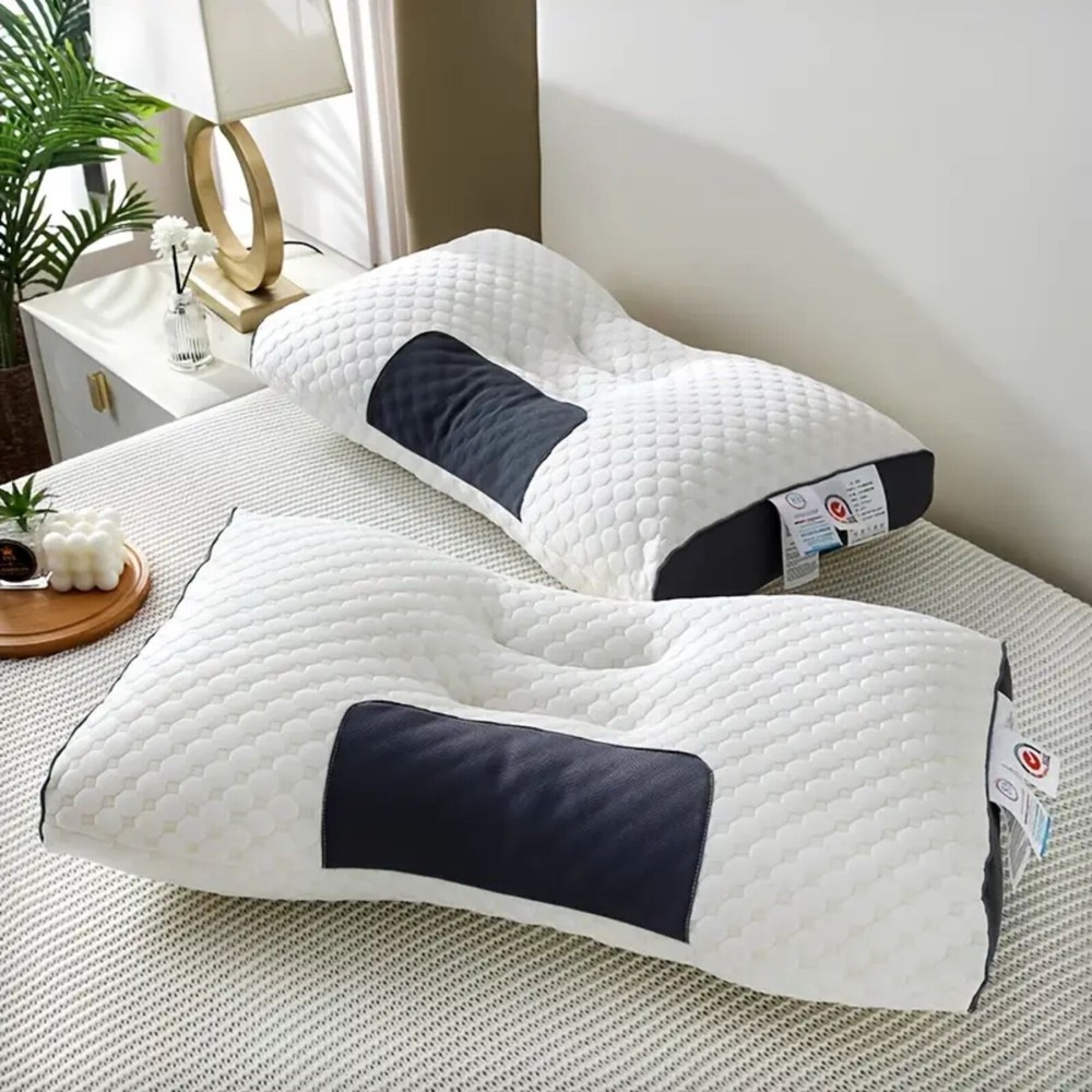 2PCS Ergonomic Cervical Neck Pillow Orthopedic Pain Relief Sleep Support Product Features: Ergonomic Cervical Support: Zoned design supports the neck in all sleep positions, reducing pressure and promoting spinal alignment. Premium Fabric: Ultra-soft, high-gram knitted fabric for long-lasting comfort – no deformation even after prolonged use. Breathable & Hygienic: Mesh zones for airflow + antibacterial & mite-resistant materials keep your pillow fresh. Stylish Contrast Design: Blends functionality with modern aesthetics. Color: White Material: Polyester + Knitted Fabric