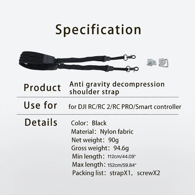 Features: skin friendly and soft materials, the hanging rope is soft and breathable. metal hook, safe and anti drop, sturdy and durable, fast disassembly, and easy to use. Widened and anti gravities pressure reducing shoulder straps can reduce the pressure on the neck or shoulders, without restricting the neck, making it comfortable to wear. Adjustable length, suitable for wide ranges of people, and comfortable to wear. Can liberates hands and make flight more comfortable. Specifications: Main Nylon Color: Black Fold Half Length: Approx. 74cm/29.1inch Applicable Model: for RC2 RCPro RCPlus Remote Control with Screen Package Includes: 1x Decompression Remote Control Lanyard Strap or 2x Hanging Buckles(optional) note: Please allow 1-2cm errors due to manual measurement. Please allow for slight color differences due to different display resolution.