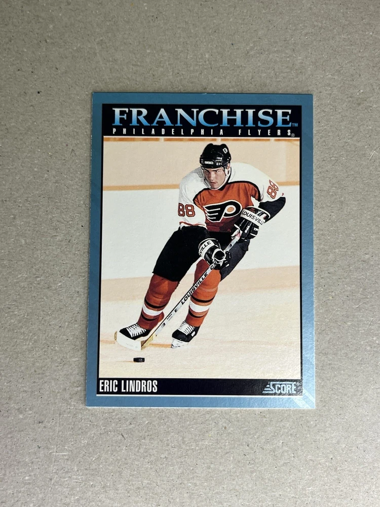 This 1992-93 Score Canadian hockey card features Eric Lindros of the Philadelphia Flyers, card number 432. Made of sturdy card stock and part of the National Hockey League (NHL) base set, this original trading card is a must-have for any hockey fan or collector. The card is in standard size and manufactured in the United States by SCORE in 1992. As a fan of the sport, this card is a great addition to any collection and a perfect way to show support for your favorite team. The card is not vintage and does not come with any licensed reprints, it is an original piece. This trading card is a perfect gift for any hockey enthusiast and is sure to be a cherished addition to any collection.