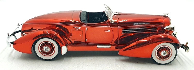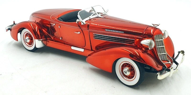 Ertl 1/18 Scale Diecast 101124M - 1935 Auburn Boattail Speedster Met Chrome Red Contact Us Home About Us Feedback Contact Us Add to favourites Ertl 1/18 Scale Diecast 101124M - 1935 Auburn Boattail Speedster Met Chrome Red click thumbnails above to enlarge Shop Home Our Feedback Ask a Question Product Description 1/18 Scale Diecast Model by Hot Wheels The MODEL is in EXCELLENT condition, previously displayed - There is no outer box, model will be well packaged - SEE PICTURES FOR BEST DESCRIPTION AND GRADING CONDITIONS Product Details Scale 1/18 Material Diecast Brand Hot Wheels EAN 7427317311187 Additional Info GRADING CONDITIONS MINT - The item is in perfect condition. NEAR MINT - Almost perfect, any imperfections will be extremely minor. EXCELLENT - The item will have had very careful use, with only small imperfections. GOOD - The item will have had more use, showing obvious imperfections. FAIR - The item will have heavy signs of wear, showing major imperfections. SPARES or REPAIR - The item will be in a poor condition. Payment Shipping Returns About Us Methods of Payment Our preferred method of payment is Paypal. Any questions please ask! Thanks. WORLDWIDE MAIL-ORDER SPECIALISTS Shipping within the UK is FREE OF CHARGE - Plese see the eBay postage tab for other worldwide shipping charges. We ship from our warehouse is the UK. We ship worldwide everyday using a Tracked / Signed For service. Over 30 years of experience shipping collectible models worldwide - you can trust our service. Any questions, please ask. Thanks for looking ! Returns We hope you are completely satisfied with your purchase. In the unlikely event that there is a problem / fault with the item we will happily provide you with a refund (excluding returns postage). About Us R.M.Toys Ltd is a family led company with over 50 years worth of experience specialising in high quality collectable models & worldwide delivery. We have continued to expand and develop as the retail market and technology has evolved and we are in no doubt we will need to continue with that trend so we hope we have been able to showcase our service and provide you, our customer, with everything you have required. Our aim is to ensure no matter what the model, we will provide an excellent service experience. To us, this means great availability, excellent customer service as well as quick & secure delivery, to anywhere across the world. All that is left to say is Thank You for taking the time to read our page and using our company to assist with your collection and gift needs - every order placed is gratefully received and as important to us as the next. Kind Regards The RM Toys Team R.M.Toys Ltd - All Rights Reserved || Design by Tapika Store The MODEL is in EXCELLENT condition, previously displayed - There is no outer box, model will be well packaged - SEE PICTURES FOR BEST DESCRIPTION AND GRADING CONDITIONS