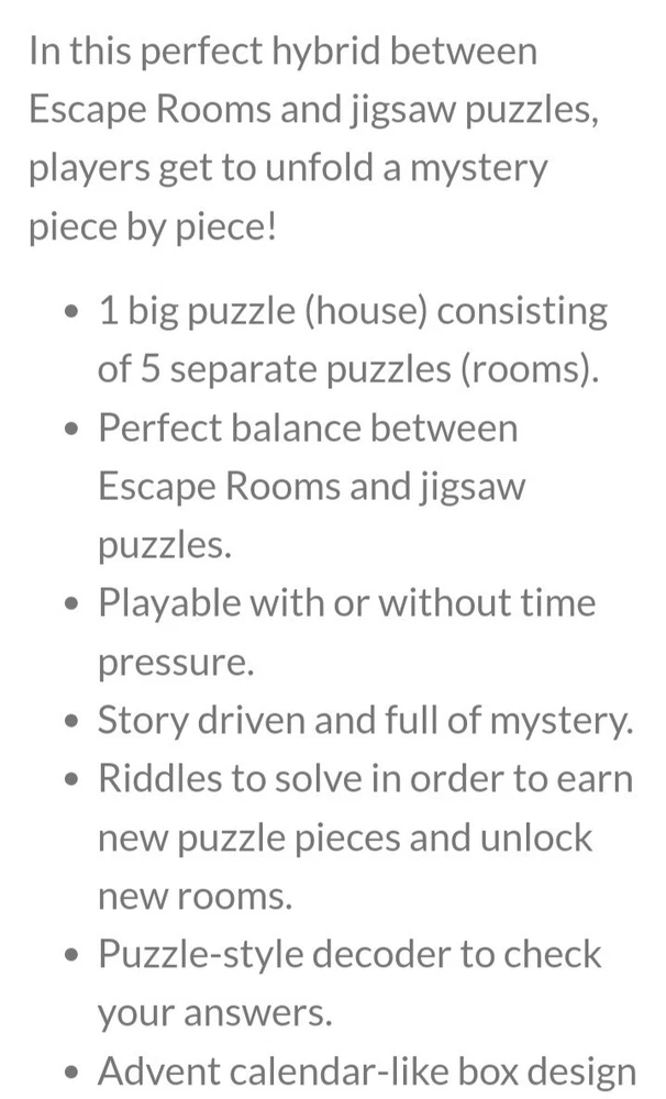 Year:2021Age Level:12-16 Years, 17 Years & UpBrand:Identity GamesCharacter Family:Escape Roomgtin13:0563490355000Estado del artículo:NuevoUPC:0563490355000Theme:EscapeMaterial:CardboardColor:Multi-ColorNumber of Pieces:500 -