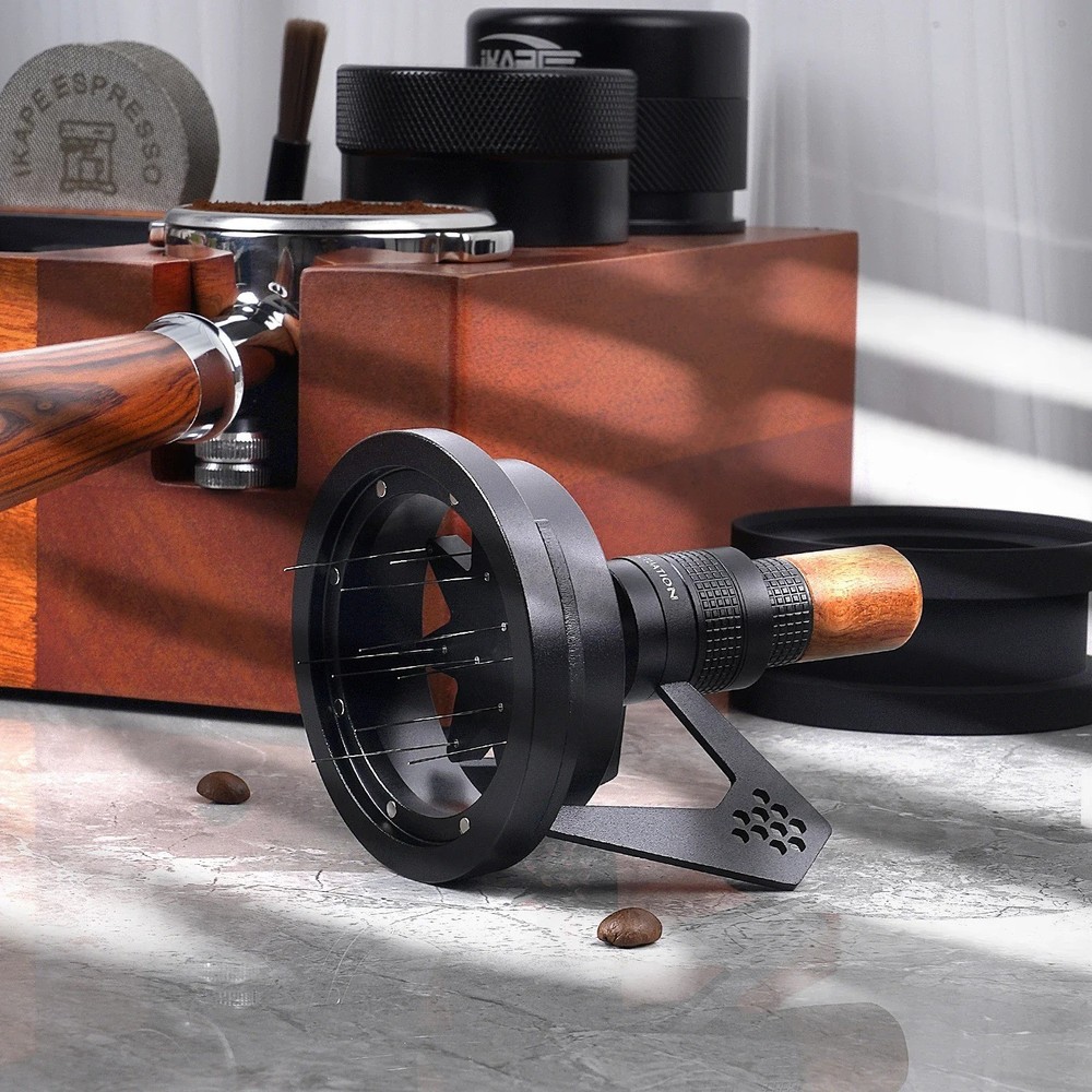 ☕️ Dial In Smoother, Sweeter Shots – Rotary WDT Espresso Tool Upgrade your puck prep with this precision rotary WDT tool, designed to break up clumps and evenly distribute grounds in your portafilter. With ultra-fine 0.25 mm needles, adjustable depth and a stable stand, it helps reduce channeling and unlock richer, more consistent extractions—perfect for both home baristas and pros. ✅ Key Features 🌟 🔹 Even distribution – Gently breaks up clumps for a uniform coffee bed and balanced extraction. 🔹 Ultra-fine 0.25 mm needles – Thin, flexible needles reach every corner without leaving deep lines. 🔹 9-needle rotary design – Multiple needles stir efficiently for fast, thorough WDT. 🔹 Smooth rotary action – Twist-and-stir motion glides through grounds for repeatable results. 🔹 Adjustable depth control – Set how deep the needles go to suit different baskets and doses 🎯 🔹 Comfortable, ergonomic handle – Easy to grip for precise, controlled puck prep. 🔹 Durable build – Robust materials designed for regular home or café use. 🔹 Included stand – Keeps the tool upright, tidy and protects the delicate needles 🧷 🔹 Reduces channeling – Minimises weak spots that cause spurting or thin, uneven shots. 🔹 Boosts flavour & consistency – Expect richer, sweeter, more repeatable espresso. 🔹 Works with any grinder – Especially useful for clumpy or static-prone grinds. 🔹 Easy to clean – Simple tap, wipe or brush to remove any coffee residue. 🎁 Ideal Gift for Coffee Lovers A thoughtful upgrade for anyone serious about espresso, this rotary WDT tool is a must-have accessory for dialling in better shots and levelling up any home coffee bar.
