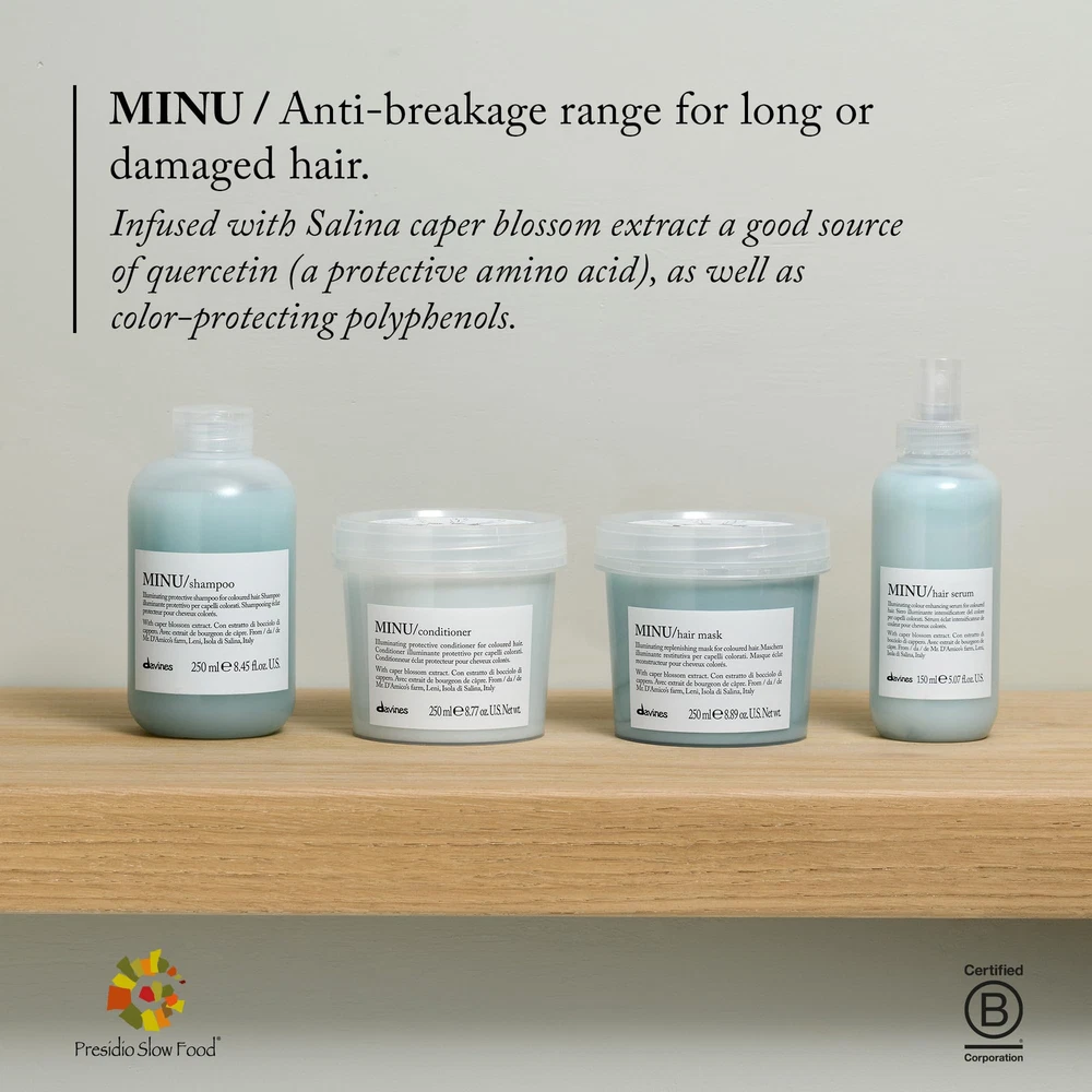 Product Description For hydrating and protecting colored hair. MINU/hair is designed with caper extract to extend the duration of color while enhancing shine. Brand Story is an international beauty dedicated to a balance of beauty and sustainability. All products are care-crafted in Parma, Italy using the highest-quality natural ingredients and scientific rigor. Provides long-lasting color protection Adds shine Protects from styling damage