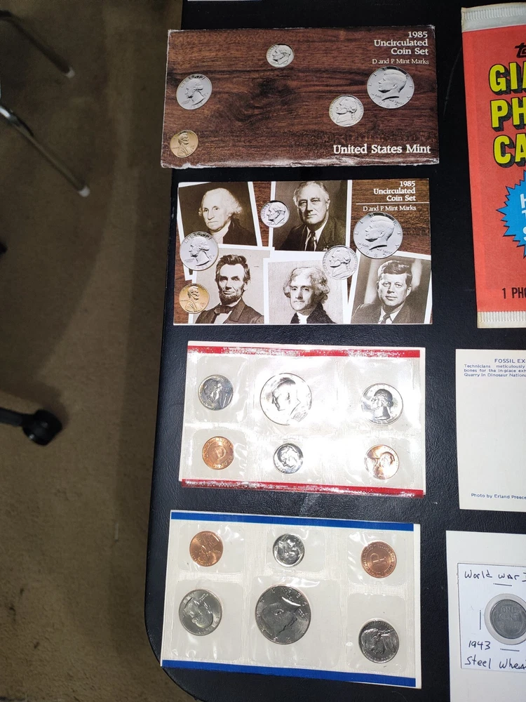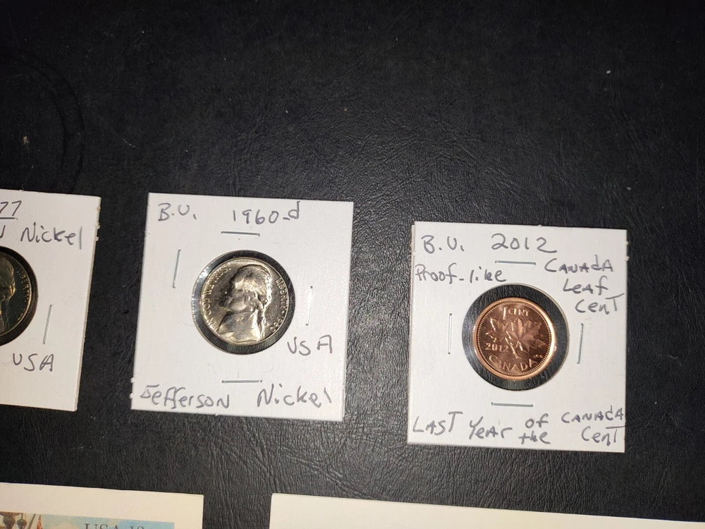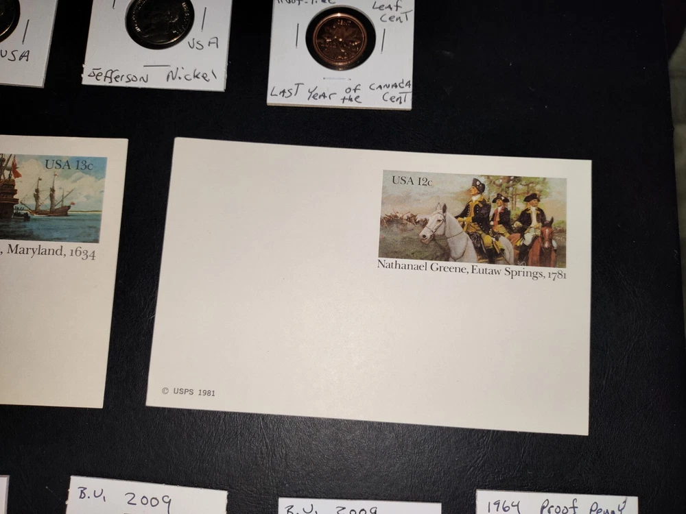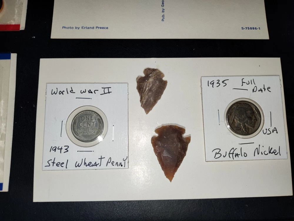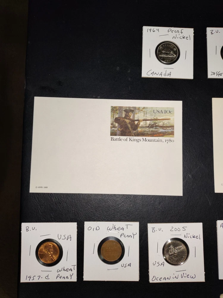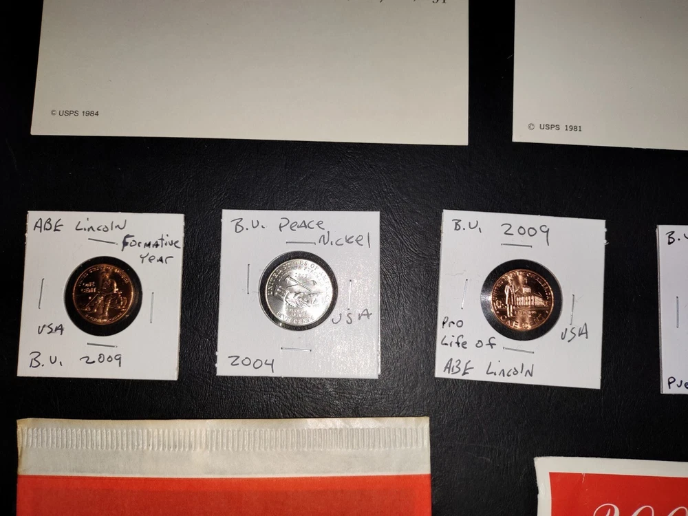 No gimmicks no junk just nice coin You get everything in pictures , see pictures you like to combine shipping just let us know we'd like to save you as much money as possible SEE PICTURES YOU GET EVERYTHING WE ACCEPT PAYPAL AND CREDIT CARD PAYMENTS You get everything in pictures ! This auction is for everything in pictures have a look see so you know exactly what your going to get...thanks All you're single individual coins will come in brand new unused coin folds 2005 United States Denver 11 coin mint set including Sacagawea dollar Kennedy half dollar two Westward journey Nickels plus five state quarters the set includes certificate of authenticity and original envelope 1935 full date Buffalo nickel usa World war II 1943 steel wheat penny usa Extra large signature sealed tops baseball card Two Flint arrowheads various colors Dinosaur fossils unused postcard Three civil war postcard with original postage unused mint condition very cool collectors see pictures 1985 United States 12 coin mint set including two Kennedy half dollars two Washington quarters two Jefferson Nickels two Roosevelt times and two Lincoln pennies This settles includes the original certificate of authenticity and envelope Brilliant uncirculated 1957 Denver wheat penny Brilliant uncirculated 2005 ocean in view westward journey nickel Brilliant uncirculated 2009 Life of Abe Lincoln pro-life penny Brilliant uncirculated 2004 piece nickel Western journey edition Brilliant uncirculated 2009 formative years of Abraham Lincoln penny Circulated old wheat penny Brilliant uncirculated 2009 Puerto Rico quarter 1964 proof Abraham Lincoln penny beautiful condition 1964 proof Canada nickel Brilliant uncirculated 2006 Jefferson return nickel forward-facing Brilliant uncirculated 1977 Jefferson nickel Brilliant uncirculated 1960 Denver Jefferson nickel 2012 proof like Canada cent uncirculated very nice condition This is the last year Canada printed a 1 cent coin this auction is for everything in pictures have a look-see so you know exactly what you'll get YOU GET EVERYTHING SEE PICTURES YOU GET EVERYTHING IN PICTURE ANY QUESTIONS OR PROBLEMS PLEASE CONTACT US WE LIKE TO PROVIDE EXCELLENT CUSTOMER SERVICE WE WILL COMBINE SHIPPING = JUST LET US KNOW