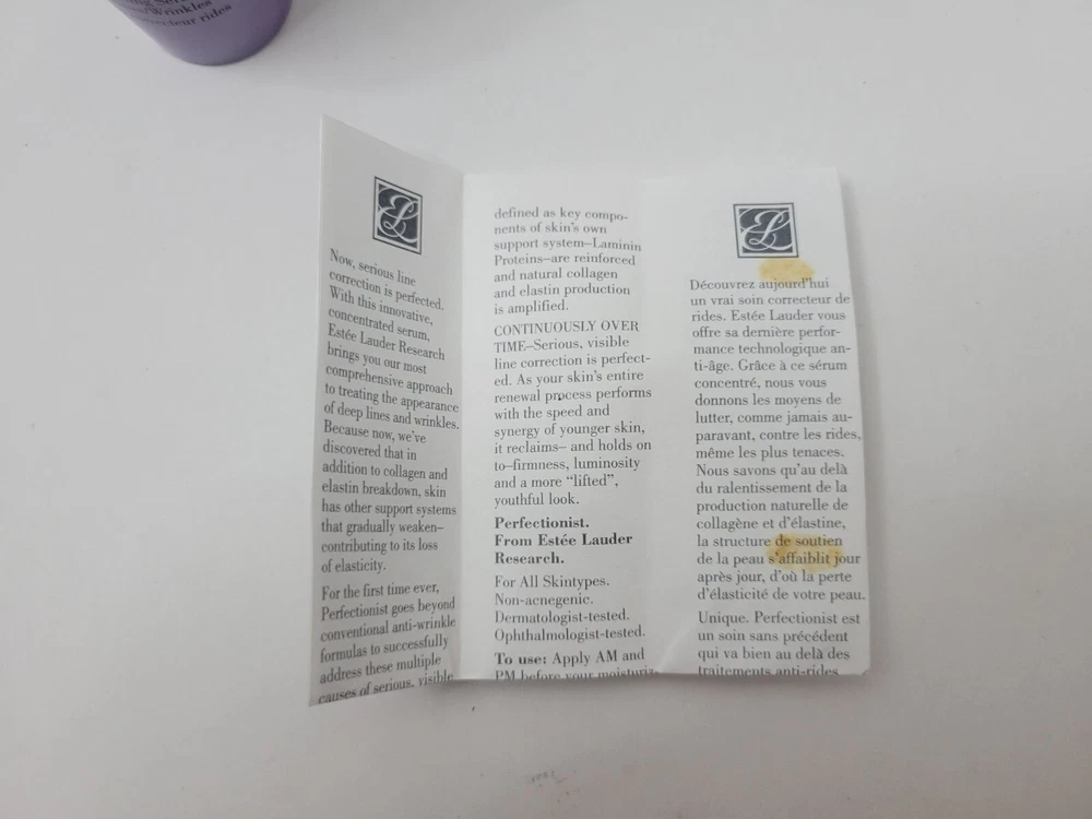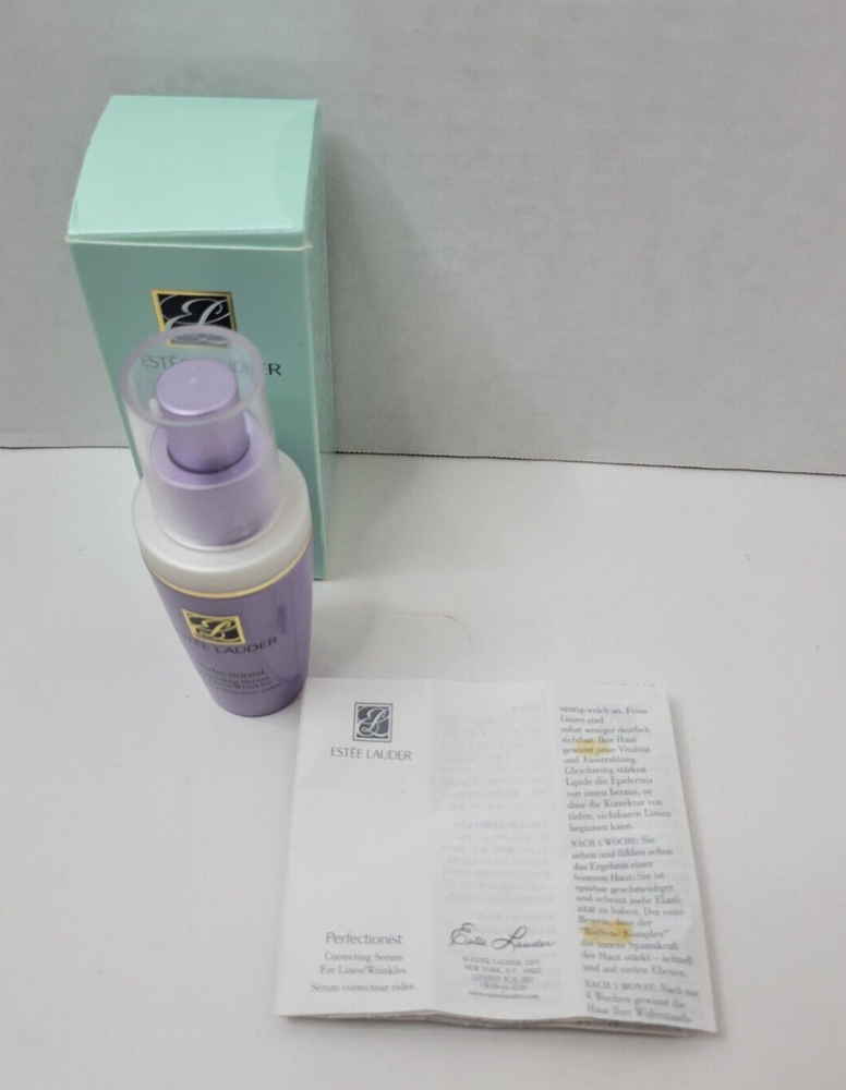 Thank you so much for your interest in our items!! Please review all photos and read entire descriptions for condition and information. If you have any further questions, please contact us anytime. Estee Lauder Perfectionist Correcting Serum for Lines/Wrinkles 1oz/30ml NOS This item looks new and it feels full! Even the tip of the item is very clean as well. This item is not sealed. There are some light markings on the paper instructions. The box is in good condition as well. I do not knowingly purchase or re-sell fake or reproduction items to the best of my knowledge! Please do you're research and contact me with any questions or concerns you may have. For hygienic reasons, we have a NO RETURN policy on all cosmetic products even if they're new or not. Before considering leaving negative feedback! Please communicate with me first so I can work with you! Thank you! Please see all pictures as they are photo's of the item's took of as they describe each item I'm selling! All of my item's come from a smoke free and pet free environment. Thank you for shopping with me on ebay your business is always appreciated, please check out my other item's listed and please don't hesitate to ask me any question's necessary prior to purchasing any of my item's. Saturday purchases will be shipped out the following Monday.