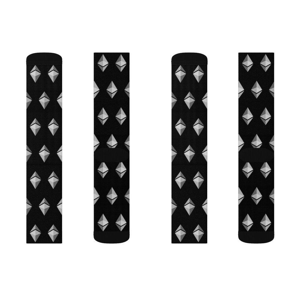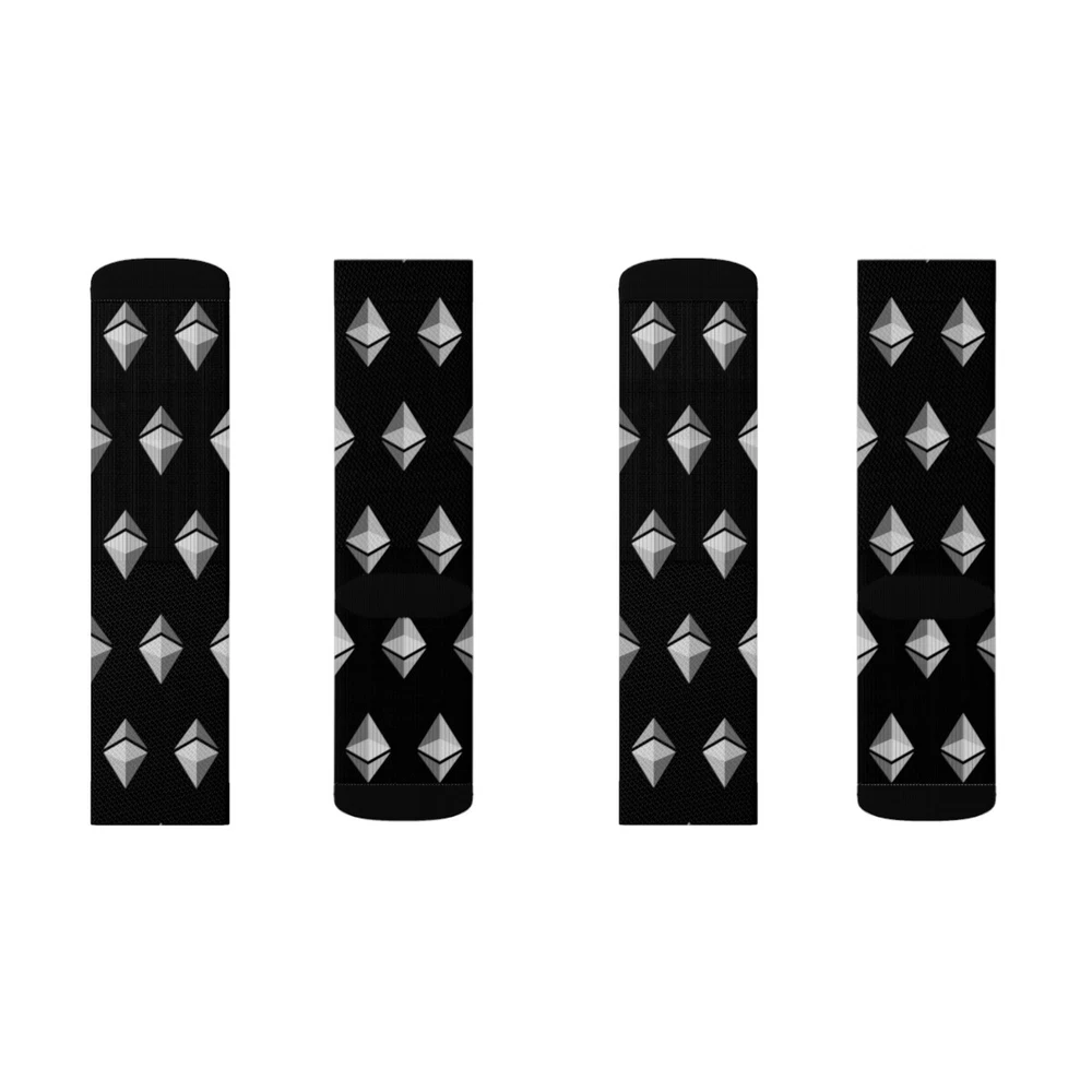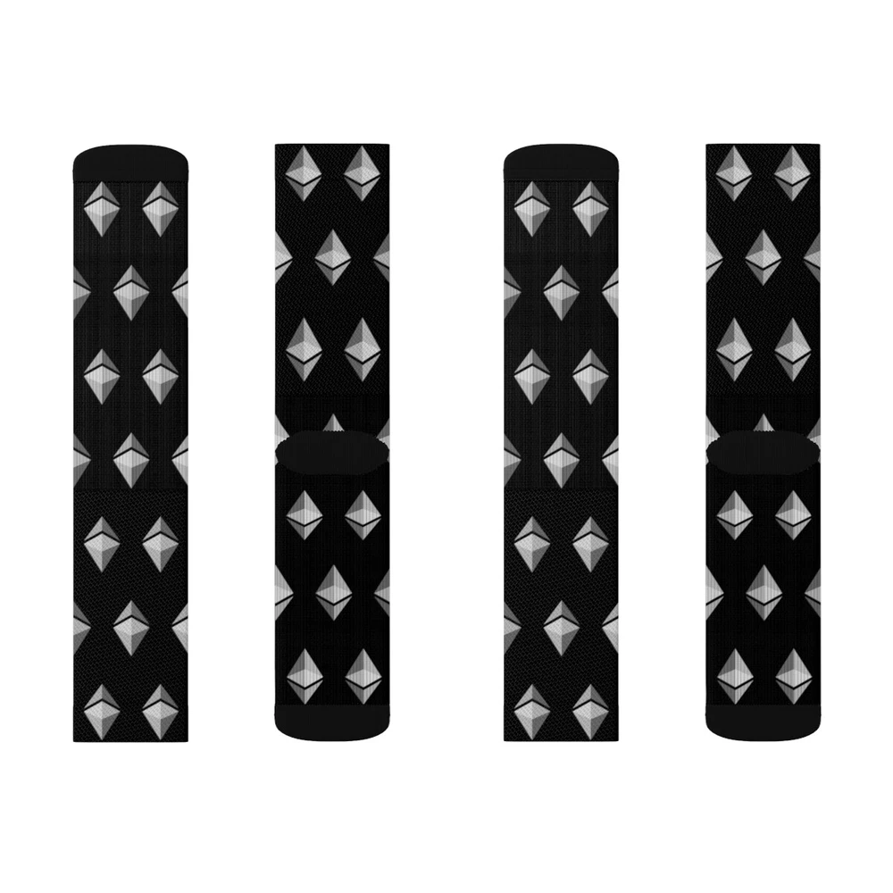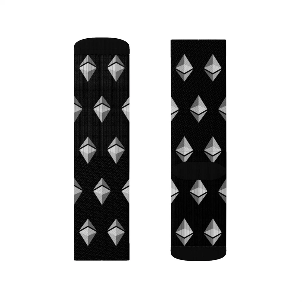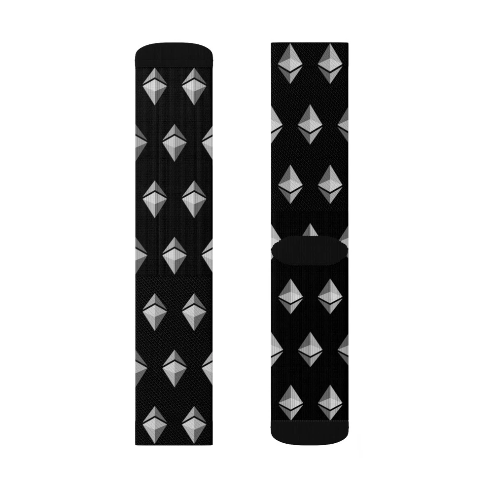 If you love Ethereum you will love these Ethereum ETH Black Patterned Crew Socks! These high-quality socks with sublimated print provide optimum comfort with style wherever one might go - a subtle accent to complement an office look or an eye-catching statement for an extravagant outfit. KEY FEATURES - 95% Polyester, 5% Spandex - 3 different sizes: Small, Medium, and Large - Ribbed tube - Cushioned bottoms - Super soft fleece inside lining at the bottom of the sock SIZING S M L Total Length, in 12.99 15.35 16.14 Width, in 3.94 3.94 3.94 Women's US size 6 - 8 8.5 - 11 11.5 - 13 Men's US size 5 - 6.5 7 - 9.5 10 - 13 CARE INSTRUCTIONS Do not dryclean; Do not iron; Dry flat; Do not bleach; Machine wash: cold (max 30C or 90F). EU representative : HONSON VENTURES LIMITED, 3, Gnaftis House flat 102, Limassol, Mesa Geitonia, 4003, CY Product information : Generic brand, 2 year warranty in EU and Northern Ireland as per Directive 1999/44/EC Care instructions : Do not dryclean, Do not iron, Dry flat, Do not bleach, Machine wash: cold (max 30C or 90F