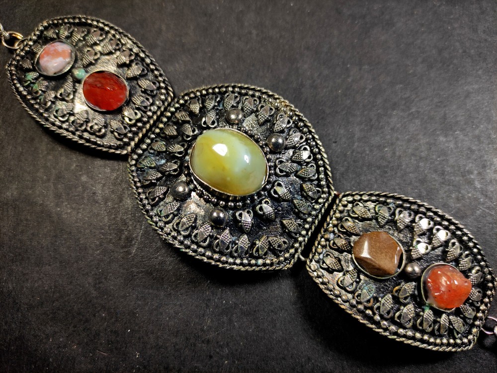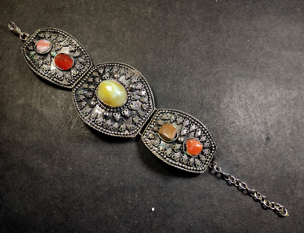USPS/UPS No long wait Product SHIPPED FROM the USA Just 5 to 6 days delivery time at a competitive price. Love the item but not the price? Make me an offer. No reasonable offer refused. Tribal Banjara Bracelet Description: It is an Ethnic adjustable hand carved bracelet made of Tibetan silver. This enchanting design is handcrafted using traditional tools and techniques. Key Features: - Metal: White Metal - Color: Multi color - Length: Adjustable Maximum 9" - Type: bracelet - Handcrafted: Each bracelet is individually handcrafted ensuring unique quality and cultural authenticity. Condition: Brand new, handcrafted with care and attention to detail. Shipping: Carefully packaged and shipped directly from the US soil. Fast and reliable shipping with tracking provided. Buy with Confidence: Authentic, high-quality, and handmade in India. This bracelet not only adds a spiritual touch to your jewelry collection but also serves as a powerful reminder of inner wisdom and clarity. Note: Due to the handmade nature of this bracelet, slight variations in color and design may occur, making each piece truly unique. Care instructions: Buying handmade products comes with a range of benefits that can be quite compelling. Environmentally Friendly : Handmade items generally have a lower environmental impact compared to mass-produced goods. They often require fewer resources and less energy to create. Additionally, small-scale production usually involves less waste and fewer pollutants. Better for the Economy : Purchasing handmade products supports local artisans and small businesses. This not only helps create jobs but also keeps money within the community, which can contribute to a more robust local economy. Purchases You Can Feel Good About : Buying handmade can give you a sense of satisfaction knowing that your purchase supports individual creators and ethical practices. It often involves fair trade practices and contributes to sustainable economic development. You Will Feel the Human Touch : Handmade items often carry a unique personal touch that mass-produced items lack. The craftsmanship and attention to detail in handmade products reflect the skill and passion of the maker, making each piece distinct and special. Value Over Time : Handmade products, particularly those that are well-crafted, can appreciate in value over time. For example, antiques or heirloom-quality items often gain sentimental and monetary value as they age, making them potentially valuable investments. Overall, choosing handmade products can lead to a more thoughtful, sustainable, and rewarding shopping experience. FOR WHOLESALE CONTACT US (B2973B/JIA ) Second lot R USA 23/12/2024