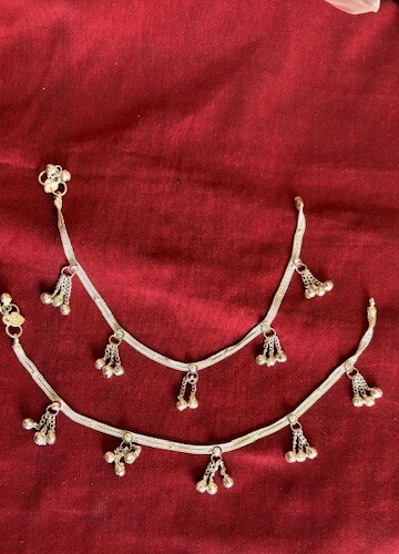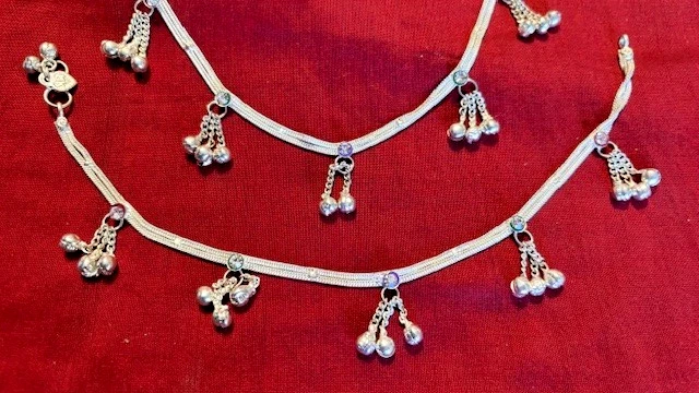 This stunning handmade silver payal is a must-have for boho lovers! The delicate chain with tiny bells and stones adds a charming jingle and ethnic elegance. Perfect for festivals or everyday wear—lightweight, beautifully crafted, and so affordable! Grab it now!