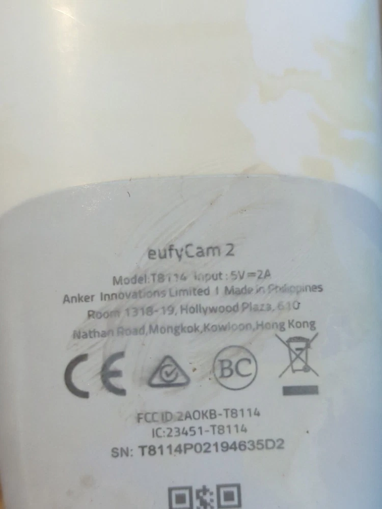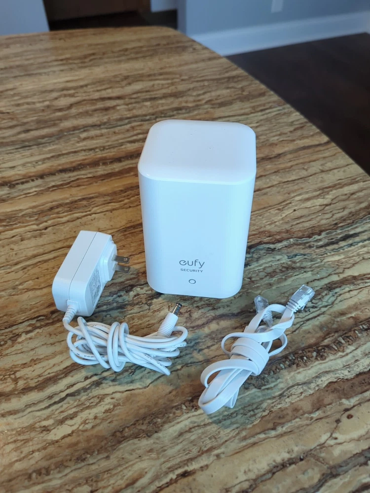 Used Working Eufy Homebase 2 (Model T8010) and EufyCam 2 (Model T8114). Includes power cable and ethernet cable for home base. Also includes a mount for the camera. Camera has some marking from the weather on the housing. Both are tested. Only selling due to the purchase of a new system.