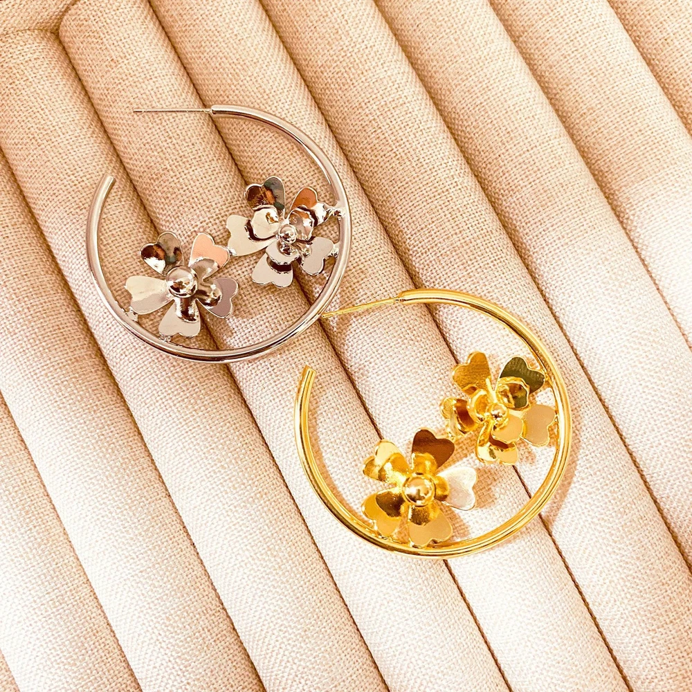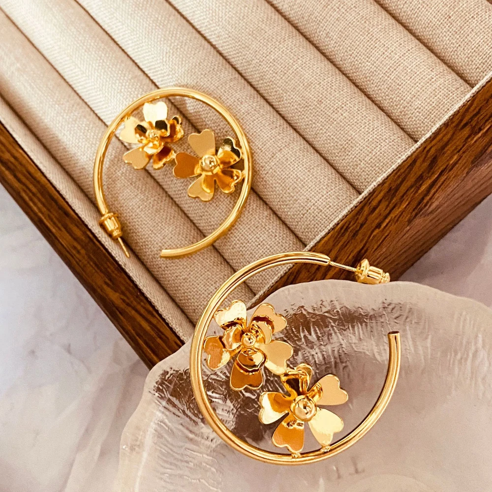 European And American Plants Flower Language Circle Geometric Earrings Design Se