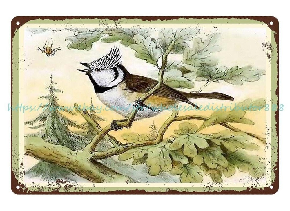 This charming vintage-style metal tin sign adds rustic character to any space! The distressed finish gives it an authentic antique look, while the lightweight design makes it easy to hang with pre-drilled holes or adhesive. Perfect for cafes, kitchens, or bird lovers—the European crested tit artwork brings a cozy, nostalgic vibe. Great quality and a fun decorative touch!