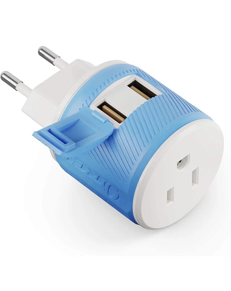 European Travel Plug Adapter with Dual USB 2USB PLUG INS (#80).