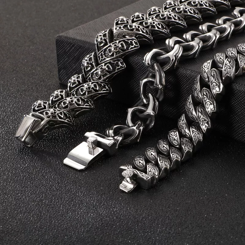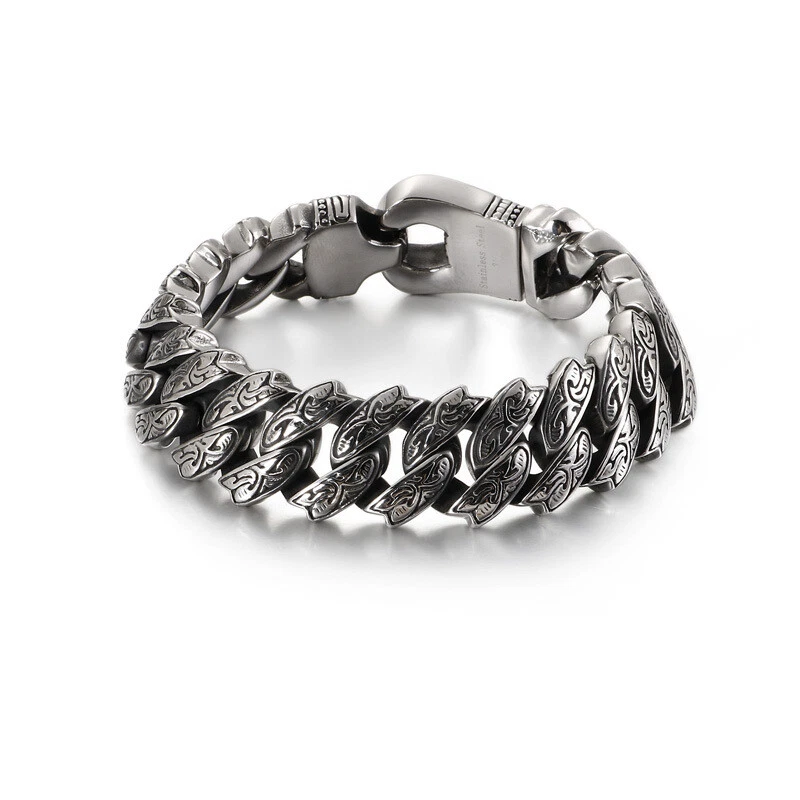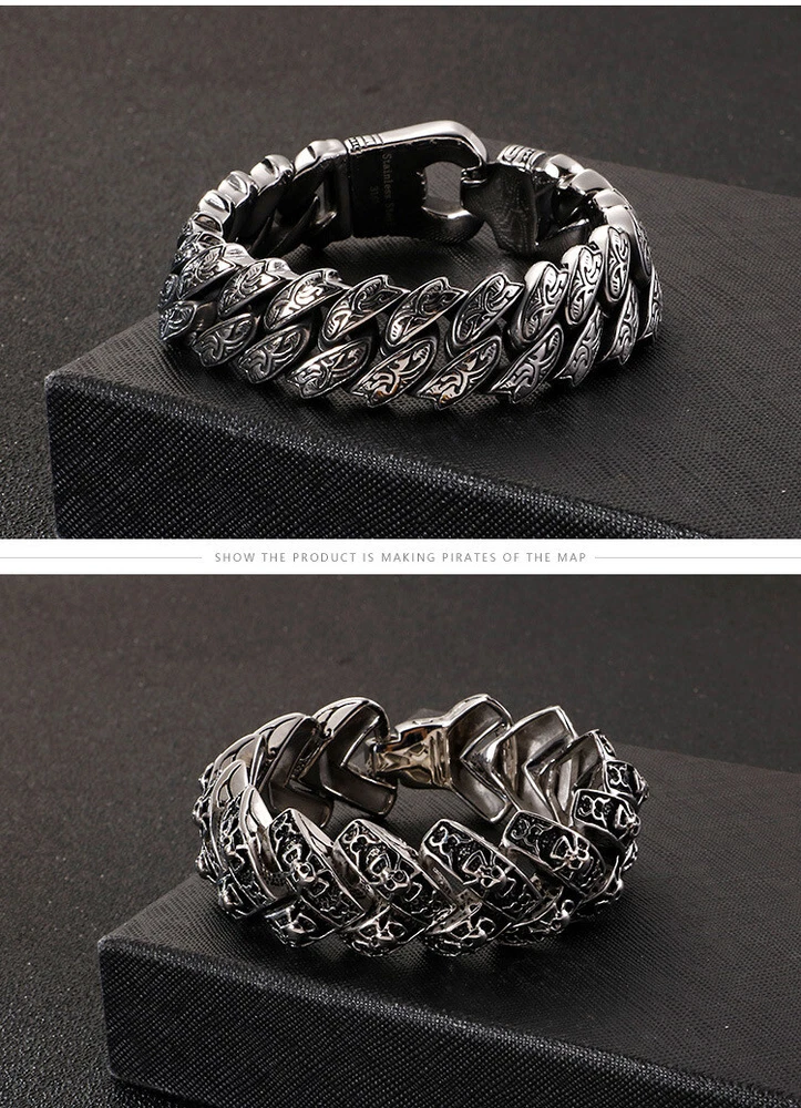 European and American stainless steel titanium steel engraved pattern bracelet