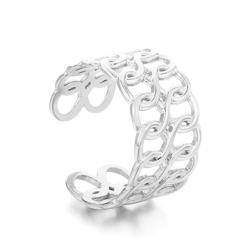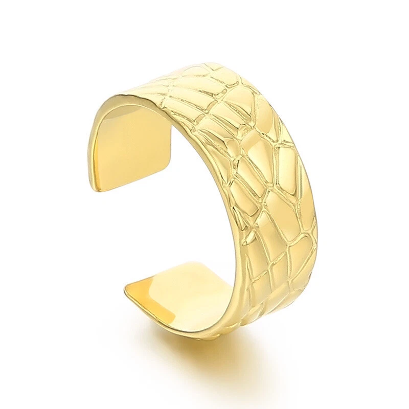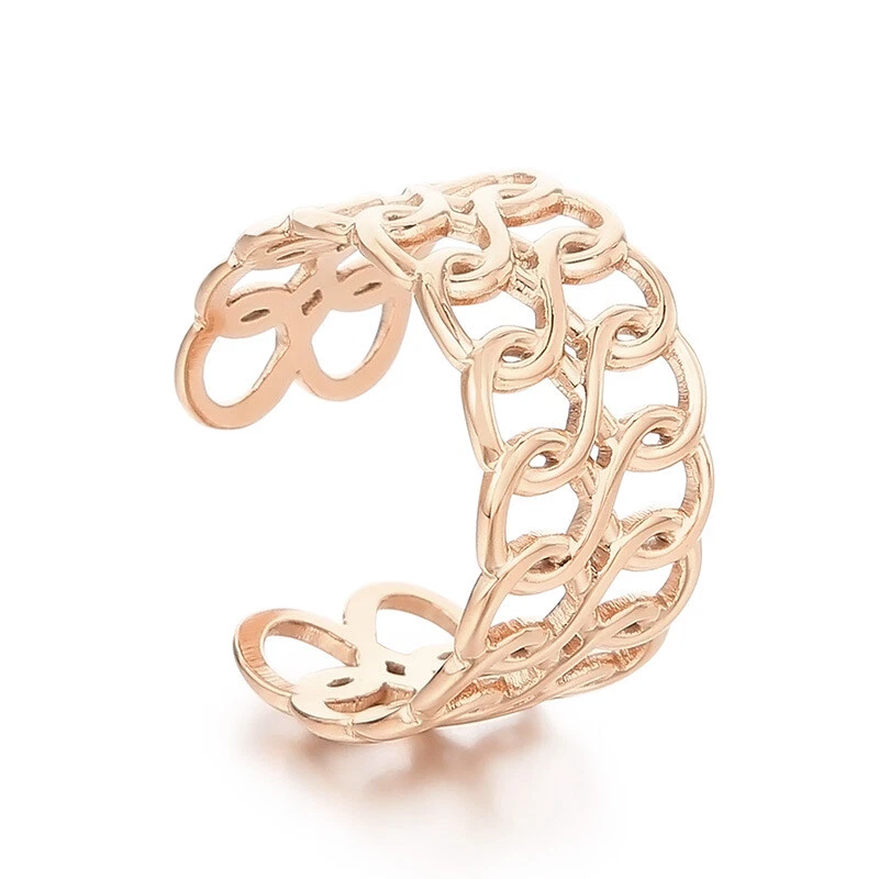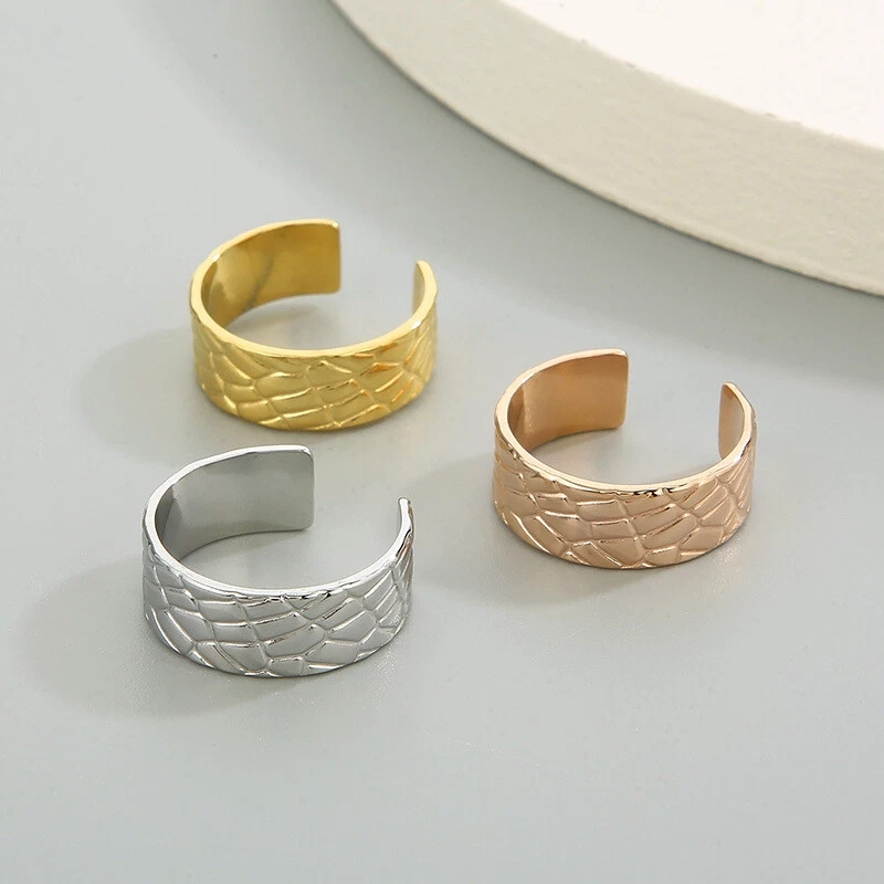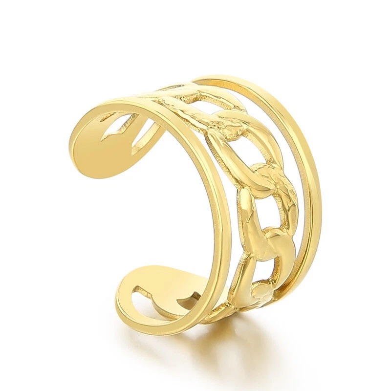 French new niche ring electroplated 18k gold titanium steel ring C open ring