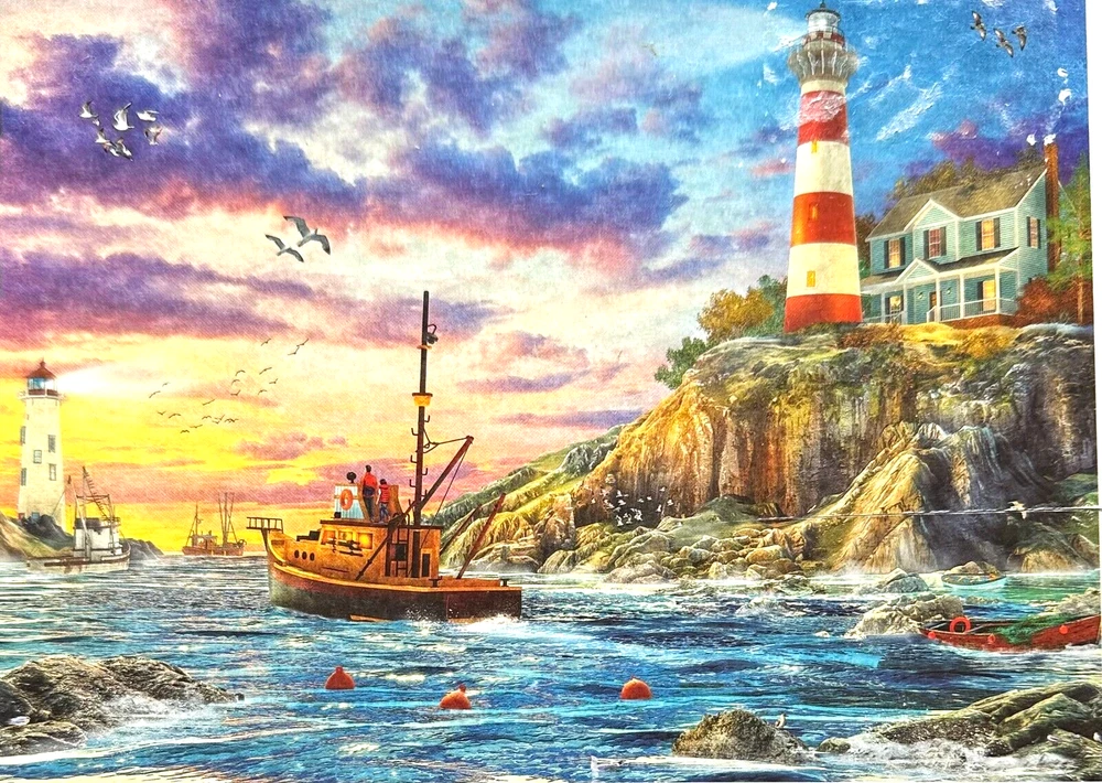 Evening Fishing COMP 1000 pc Puzzle Lighthouses Trawlers Rocks Buoys Hillside Dangerous Inlet Buy more than one item and save a lot on postage! I am happy to combine shipping on multiple items by weight. I will refund any overage paid. Please look at my site joycescorner for additional puzzles and other items. I usually add a few different one each week. Feel free to contact me if you have any questions. I try to ship items within 2 business days of completed payment. Thank you for looking!