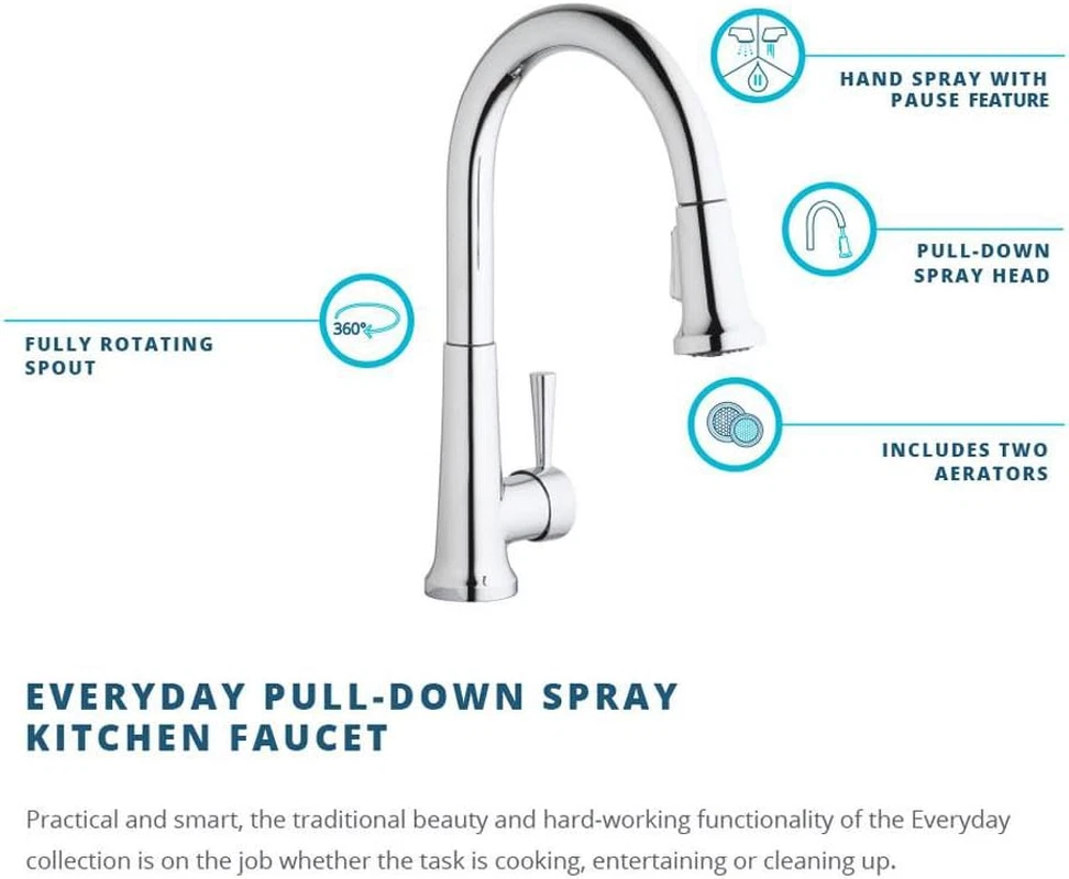 Everyday LK6000CR Single Hole Deck Mount Kitchen Faucet with Pull-Down Spray and