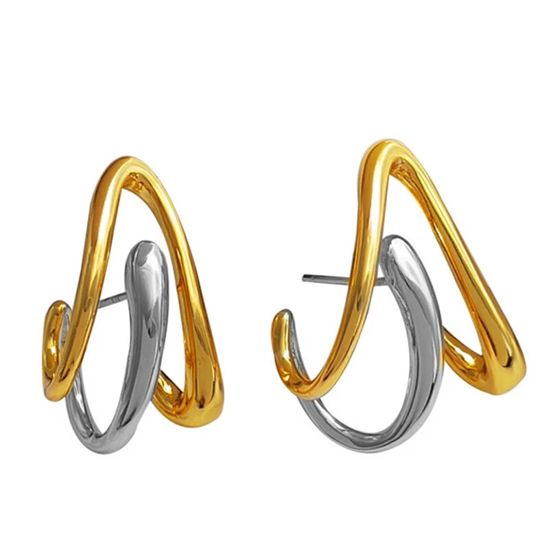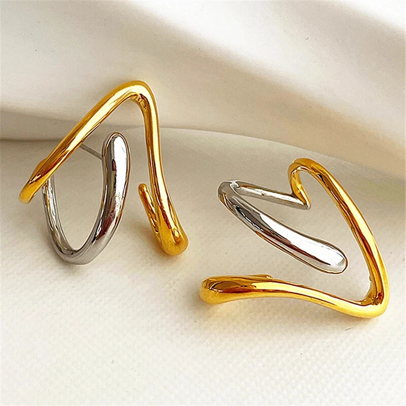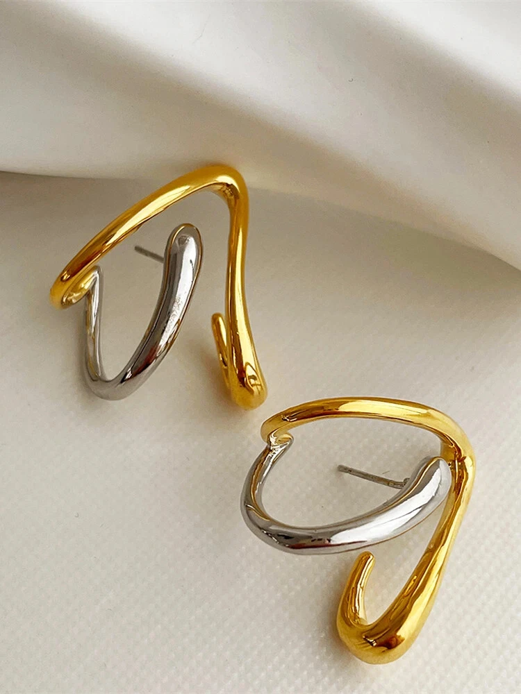 Project: Exaggerated irregular style studs three-dimensional design sense abstract earrings attend cocktail party earrings Material:Copper alloy+ Plating Retro Gold Size: as shown Gender: Female/female/lady/girl Shape: geometry Color: As shown Occasion: Party/office/leisure/gift