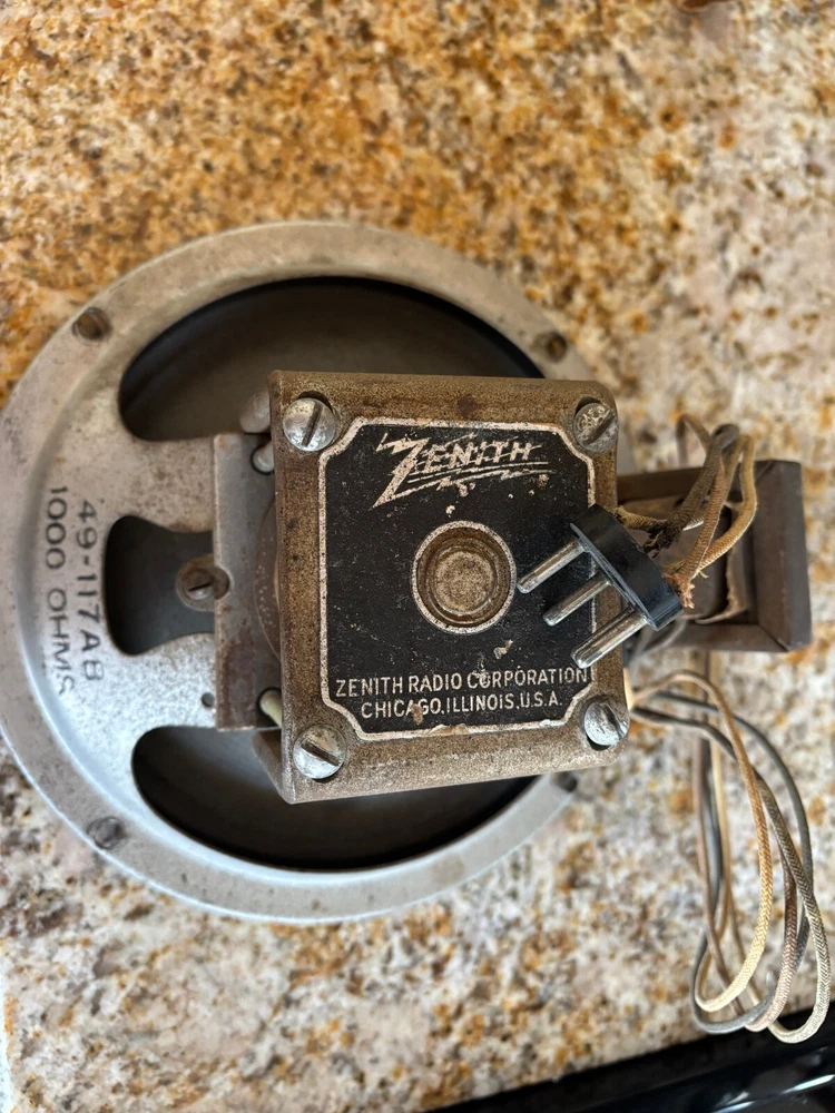 Original excellent speaker produces superb sound .Damage free cone. This is the correct part number for Waltons and several other Zenith tombstones. We also have a 30x60 storage unit full of consoles, tombstones and cathedrals. Selling my collection of 2500 radios. See additional pics of other table radios. For more info on radios contact me at 9375729297 Save money with local pickup or delivery to Michigan and Illinois swap meets.