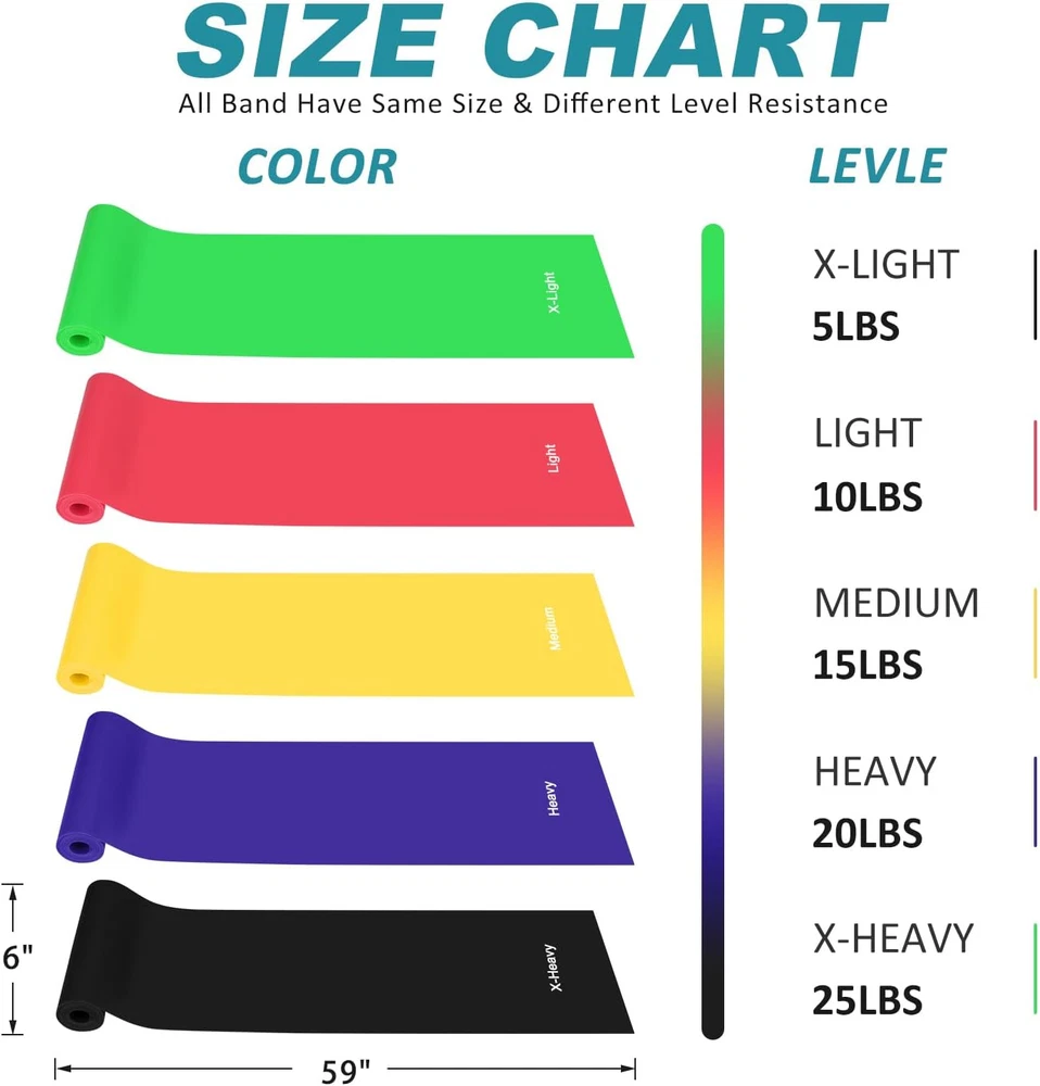 Store New Arrivals Add to Favorite View Feedback Contact Fast deliveries to the customer's home Quality customer service John Make the customers happy! Exercise Bands for Working Out, Resistance Bands Set with 5 Resistance Levels, Skin-Friendly Elastic Bands with Carrying Pouch for Home Workout Description 【Durable and High Resistance】Resistance bands are made of TPE, skin friendly, non-toxic and latex free, people with latex allergies can use it safely. You can wrap them around your hand a few times for more tension and a secure grip, or tie a knot and use them as loops, you can also double them up for more resistance. 【5 Resistance Levels】Offer a lot of versatility with 5 levels of resistance(5-25lbs). You can easily tailor your training depending on your strength, ability and comfort, no matter you are a beginner or experienced users. it's a perfect choice for Yoga, Pilates, Fitness, Losing Weight, Physical Therapy, Strength Training, Rehabilitation, Wrestling, Bodybuilding, Increase Flexibility. 【Lightweight and Easy To Use】Our resistance band is lightweight, comes with a carrying pouch, it's easy to carry and does not take up much space. Portable design exercise band allows you can do exercise anywhere, such as home, gym, office, hotel, beach and travel and so on. Definitely the most meaningful Christmas, birthday or special occasions gifts for you, your family and friends! 【Fitting Size and Multiple Uses】Our 59 inch long, 6 inch wide resistance bands can help you achieve a more effective full body stretch and strengthen your workout than regular sized bands. These resistance bands are often used for sports and fitness, physical therapists love these physical therapy bands to help them rehabilitate their patients. Our stretch bands work for people suffering from leg, knee and back injuries. 【What You Get】5×Resistance Bands, 1×Carrying Pouch, Our exercise resistance bands are easy on skin. The instruction booklet includes illustrated exercises that demonstrate how to use our resistance bands. Your satisfaction is our goal. If you are not satisfied with our resistance bands, please feel free to contact us, we’ll do whatever else it takes to keep you happy. Product Description Arm Shaping Say goodbye to butterfly arm, become more shaped for persevering training. Energetic and sharped figure, new look everyday. Back Tightening Tighten the back line and enhance the temperament. Condfidence from the inside always is your one of a most charming characteristics. Full Body Stretching High performance fitness equipment for full body stretching. Just listen to the music and enjoy the pleasure of training. Help build endurance Resistance bands can really spice up your existing cross-training by adding resistance to your cardio exercises. The elastic bands by their nature of material and design easily adapt to your existing cardio workouts. Available for all ages and stages Exercise band is especially suitable for the elderly as well as anyone with leg, knee and back injuries and helps recover from tearing MCL and ACL, knee replacement, bone and meniscus repair. They are also ideal for women to use during pregnancy and after childbirth to stay healthy. Make a Great Gift Buy resistance exercise bands for yourself and one for your friend, workout partner or spouse, this is the beginning of a surprise. Tension Level 10 pounds Style Resistance Bands,Wrap Unit Count 5.0 Count Part Number Exercise Bands-A Color colorful Number of Resistance Levels 5 Material Thermoplastic Elastomer (TPE) Package Weight 0.52 Kilograms Item Weight 1.2 Pounds Suggested Users womens Size 4.9ft Recommended Uses For Product Home Item Dimensions LxWxH 59 x 6 x 0.04 inches Sport Strength Training/Exercise And Fitness/Pilates/Yoga Special Feature Lightweight,Portable Product Dimensions 59"L x 6"W Item Package Dimensions L x W x H 7.01 x 4.8 x 1.83 inches Included Components Handle ABOUT US We offer the best prices around on high quality products. Our E-store includes media such as books, movies, music and games while offering electronics, toys, sporting apparel, clothing, tools, general home, garden items and more. SHIPPING We are always working hard to ensure your package arrives as soon as possible. Please understand that some factors like weather, high postal traffic, and the performance of shipping companies are outside of our control. We offer free shipping to the lower 48 states and ship within 2 business days of payment, usually sooner. We do not accept P.O. Boxes. Please provide a physical address. For shipping outside of the continental USA, we only use eBay's Global Shipping Program. The item is shipped to KY and then sent to the rest of the world. International customers are responsible for all duties and taxes. Continue to 'check out' to calculate costs for shipping the item to your country. Messages regarding eBay's Global Shipping Program MUST be directed at eBay EXCLUSIVELY. RETURNS We offer a 30-Day Return Policy on items in which you are not completely satisfied with. You have the option of a full-refund or an exchange of the item. No returns are available on items shipped outside of the USA PAYMENT We accept PayPal. CONTACT US This page content is yet to come Please ad us to your favorite seller and visit again later Thank You CUSTOMER SATISFACTION We try our very best to make sure every customer is completely satisfied. If there's a problem, message us! We're happy to help. WE ACCEPT
