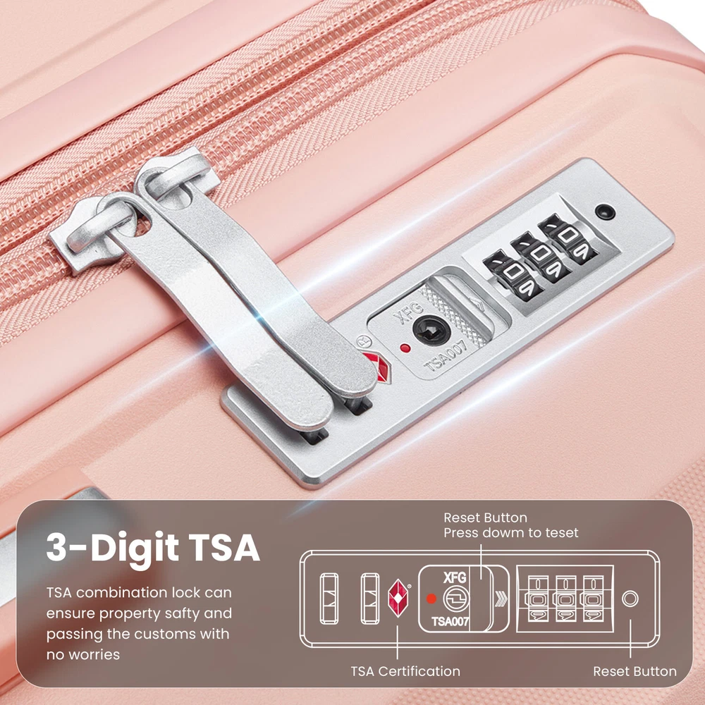 Specification Product Information Item Code:W2098P186565 Product Type:General Item Product Name:Luggage 4 Piece Sets(14/20/24/28), Hard Shell Lightweight TSA Lock Carry on Expandable Suitcase with Spinner Wheels Travel Set for Men Women Place of Origin:China Main Color:Pink Main Material:Polypropylene Product Dimensions Assembled Length (in.):Not Applicable Assembled Width (in.):Not Applicable Assembled Height (in.):Not Applicable Weight (lbs.):Not Applicable Package Size Length (in.):19.30 Width (in.):11.50 Height (in.):30.00 Weight (lbs.):26.50 Product Features Lightweight Luggage Sets: Made of environmentally friendly imported ultra-light PP material, Compared with ABS and PC plastics, PP materials suitcase have better resilience, it can be restored to its original state after being hit violently. Luggage 4 piece sets are the best choice for travel, family travel and business travel. Expandable 4 Piece Luggage Set: The 14 inch suitcase can store some daily necessities such as cosmetics, water glasses, etc. which is easy to access at any time. 20 inch carry on luggage & 24 inch suitcase is perfect for business and personal travel, 24 inch & 28 inch luggage is expandable, which can expand 25% of the additional space. Luggage with TSA Lock: TSA customs password lock design to avoid violent damage to the luggage. which allows only TSA agents to inspect your bags without damaging the lock when traveling. Silent Suitcases with Spinner Wheels: Luggage with spinner wheels can help save your strength and make your suitcase lighter. Luggage moves very silent and smoothly with 360° rotate double wheels, which better than other singer wheel. Full interior space: Travel luggage with fully lined interior has adjustable tie-down straps for securing garments in place.This roller suitcase has reinforced padded top and side handles to make it easier to lift and carry your luggage.