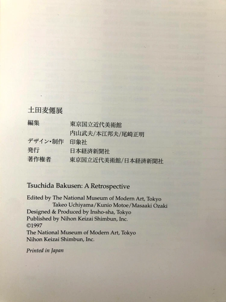 Book Title: Tsuchida Bakusen A Retrospective The National Museum of Modern Ar Publication Year: 1997 Seller Notes: “slight feeling of age / light scratches or other, but overall good” Country/Region of Manufacture: Japan Author: N/A Original Language: Japanese Language: Japanese Type: Picture Book Topic: Abstract Art, Art Criticism, Art History, Artists, Buddhism, Calligraphy, Classic Modern Art, Contemporary Art, Cultural History, Culture, Exhibitions, Fine Arts, Modern Art, Museums, Paintings, Popular Culture, Print Art, Japan, Japanese, Shunga Genre: Art & Culture