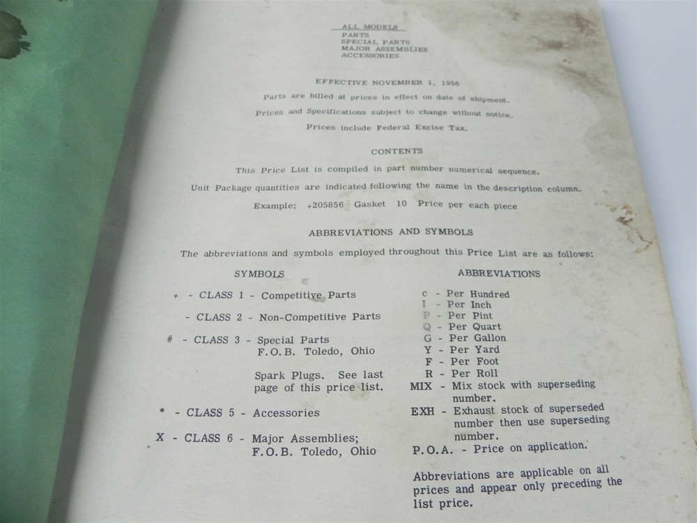 Willy's All Models Factory Dealer OEM Parts Price List Published 1956 Original Jeep Manual -Not a cheap reprint Willy's All Models Factory Dealer OEM Parts Price List Published 1956 See photos below for details. ABOUT US Jones Vintage Parts has been a family-owned business for over 40 years. We specialize in rare and vintage NOS and used parts for all makes and models from the teens to the 70s. We're passionate about uncovering and restoring the stories of the treasures from your grandparents and great grandparents history. We believe in breathing new life into the world's first modes of transportation. New vintage all the time! SHIPPING INFORMATION Purchased items will generally ship Monday through Friday, within 3 days via USPS Flat Rate or First Class upon payment receipt. Larger items will be shipped via FedEx Ground or UPS. Multiple same-day purchases will be combined for discounted shipping (request a revised invoice to receive bulk shipping discount or notify us of future purchases). International shipping also available. RETURN POLICY Our goal is your satisfaction. If you are unhappy with your order for any reason items may be returned for parts credit within three (3) days of receipt, and you will be charged a 10% restocking fee. There are no shipping refunds. Exchanges will be billed appropriate freight. All return items must be complete, undamaged, unaltered and in resale condition. You may be interested in our other eBay listings . Powered by SixBit's eCommerce Solution
