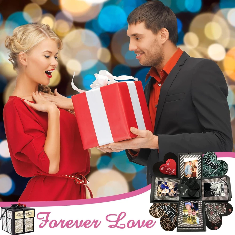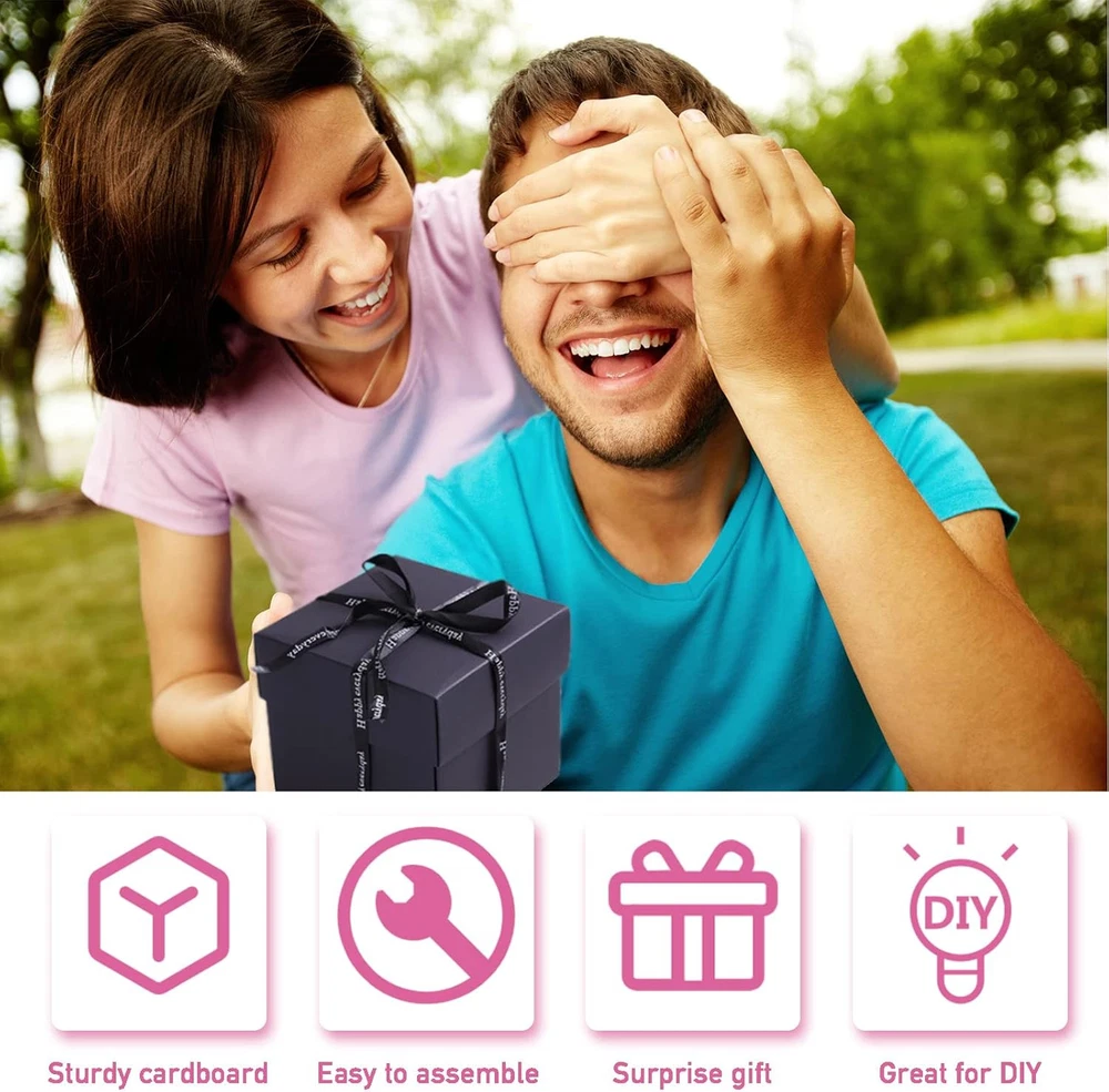 Explosion Box Gifts,Surprise Creative DIY Photo,Exploding Love Black 2 Product Details Brand: Hamiggaa Age Range (Description): All Ages Color: Black 2 Theme: Christmas,Love Cartoon Character: Gift Giving 【Explosion Box DIY Gift】:When the box is closed,it looks like a normal ribboned gift box;when opened,the pictures inside will bloom like flowers.Our exploding gift box album gives a strong visual impact to your loved ones. 【Widely Application】:When the explosion box is opened,there is a small surprise gift box inside where you can put rings,watches,perfumes,belts,earrings,necklaces or other gifts as a surprise. 【Surprise Box】:You can DIY an amazing special photo album.Create a custom one with your own photos and messages to make it a very meaningful handmade gift for your loved one,friends,parents or just yourself. 【Great Gifts】:The love memory photo box is perfect for Anniversary,Valentines Day,Birthday,Christmas and Thanksgiving Day.You can make it into photo memory albums,wedding albums,baby albums,travel albums and graduation albums.It can save all the good memories forever. 【Package Includes】:1 × DIY explosion box,1 × small suprise gift box(Can be installed in the explosion box),1 × ribbon,1 × sticker,1 × paper flower,1 × double-side tape,7 × black fun magic cards,1 × red paper heart.