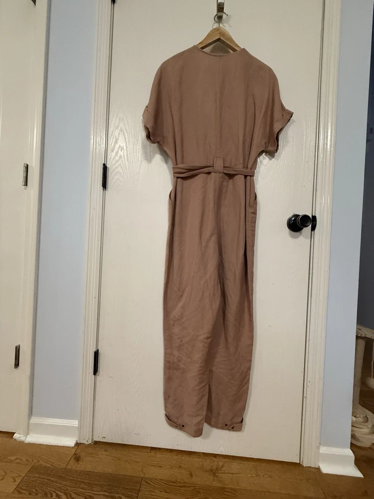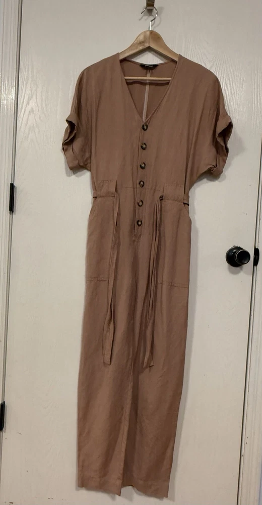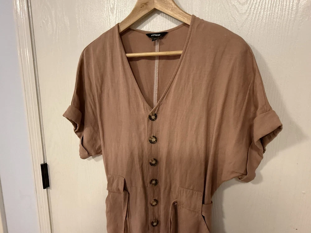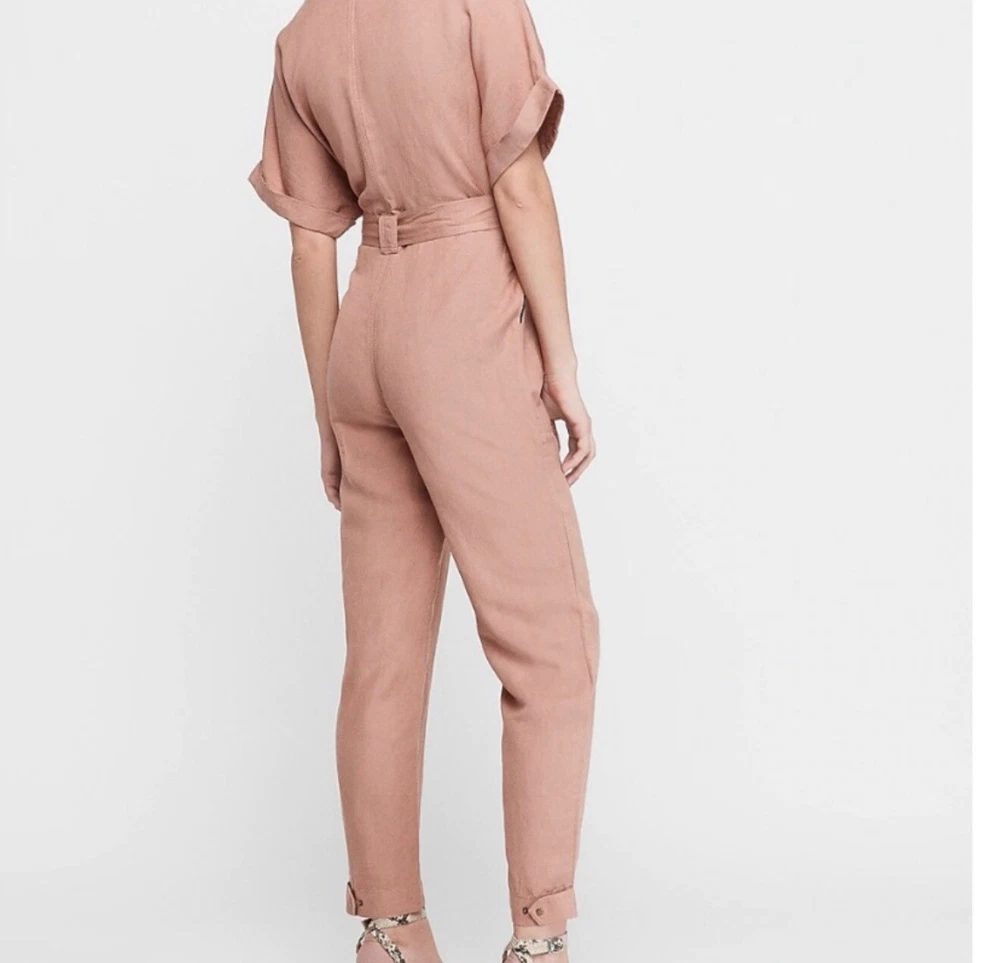 Express Button Front Utility Jumpsuit Womens XS P Belted Pockets Dark Blush Pink