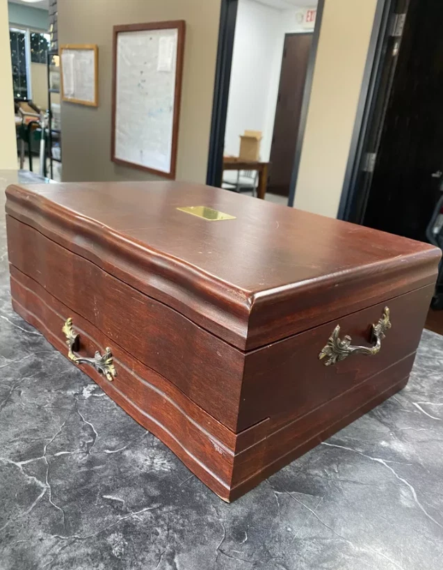Here is a very impressive 109-piece flatware setting from Tiffany & Co., in the highly regarded "Olympian" pattern. This outstanding set, made from gold vermeil over solid sterling silver (.925), is dated 1878 and weighs 7,328.87 grams (235.6 troy ounces). It is presented in a plain wood flattare storage box and remains monogram-free, ensuring its condition is pristine. **Set Includes:** - **12 Place Spoons** - Length: 6 inches - Weight: 45.5 grams each - **6 Dessert Oval Soup Spoons** - Length: 7 inches - Weight: 82.96 grams each - **4 Large Jelly Spoons** - Length: 7 1/4 inches - Weight: 83.0 grams each - **2 Serving Tablespoons** - Length: 8 5/8 inches - Weight: 117.23 grams each - **2 Solid Serving Spoons** - Length: 9 inches - Weight: 151.0 grams each - **1 Solid Salad Serving Spoon** - Length: 10 inches - Weight: 154.15 grams - **1 Solid Salad Serving Fork** - Length: 10 inches - Weight: 147.76 grams - **1 Sugar Spoon** - Length: 5 7/8 inches - Weight: 52.79 grams - **12 Demitasse Spoons** - Length: 4 1/8 inches - Weight: 18.74 grams each - **1 Long Cream Ladle with Plain Round Bowl** - Length: 7 inches - Weight: 57.01 grams - **1 Solid Gravy Ladle** - Length: 7 3/8 inches - Weight: 126.45 grams - **13 Salad Forks** - Length: 6 3/4 inches - Weight: 62.18 grams each - **12 Dinner Forks** - Length: 8 inches - Weight: 104.58 grams each - **2 Solid Serving Forks** - Length: 8 1/2 inches - Weight: 107.74 grams each - **1 Large Pierced Cold Meat Serving Fork** - Length: 9 inches - Weight: 107.73 grams - **1 Pie/Cake Server (Stainless Steel Blade)** - Length: 10 3/4 inches - Weight: 116.23 grams - **1 Cheese Knife (Stainless Blade)** - Length: 7 1/8 inches - Weight: 51.66 grams - **12 Butter Spreaders (Stainless Steel Blade)** - Length: 6 inches - Weight: 35.72 grams each - **12 Steak Knives (Stainless Steel Blade)** - Length: 9 inches - Weight: 59.98 grams each - **12 Blunt Hollow Table Knives with Bolster (Stainless Steel Blade)** - Length: 10 3/8 inches - Weight: 79.23 grams each