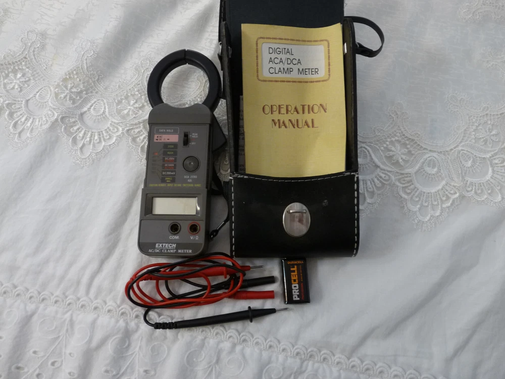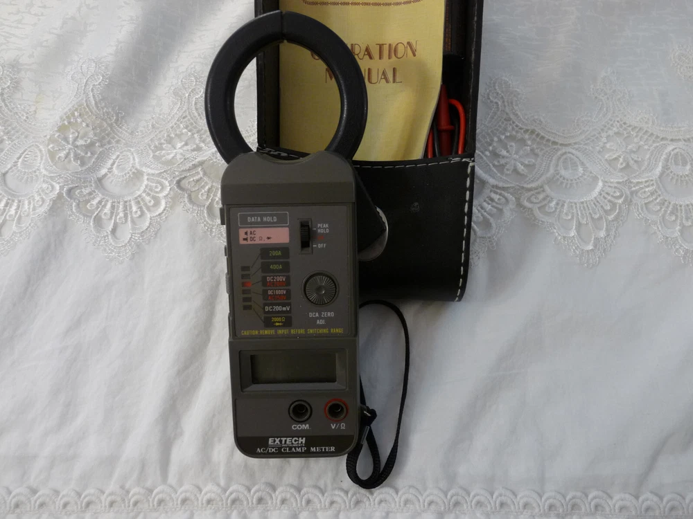 Please Read Full Description And Look At Pictures Closely For What You Will Be Getting , Used Extech AC/DC Clamp Meter W/Case & Operation Manual , No Warranty Or Guaranty ,All Sales Final , No Returns, Thank You