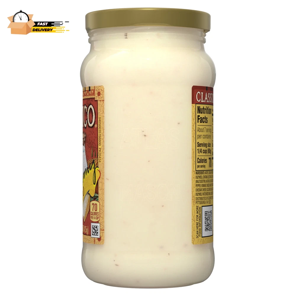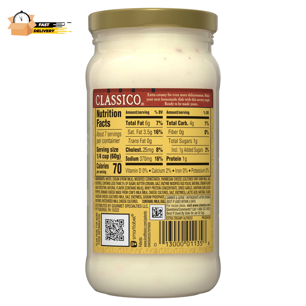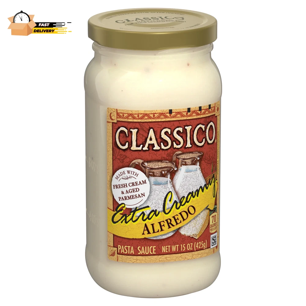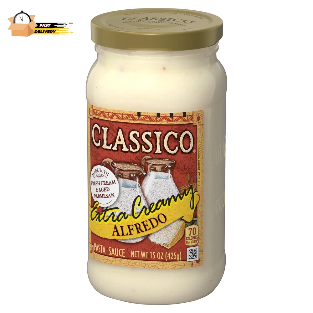 Store New Arrivals Add to Favorite View Feedback Contact Extra Creamy Alfredo Pasta Sauce, 15 Oz Jar Description Food Allergen Statements Contains: Milk, Egg. Total Fat Per Serving 6g Food Form Liquids Calories Per Serving 70cal Total Protein Per Serving 1g Manufacturer Part Number 013000011358 Fiber Daily Value Percentage 0.00 Allergen-Free Statements Gluten-Free Assembled Product Dimensions (L x W x H) 2.82 x 2.82 x 5.71 Inches Classico Extra Creamy Alfredo Pasta Sauce is made the way the earliest Alfredo sauces were made in Rome. Here, fresh cream is blended with butter, Parmesan cheese, and a hint of black pepper for an authentic rich and creamy flavor. This gluten free pasta sauce helps you create exciting and delicious meals such as chicken Alfredo, fettuccine Alfredo, and shrimp pasta easily. Just simmer the extra creamy pasta sauce and pair it with pasta or a dish of your choice to enjoy an authentic Italian style dinner. This Classico Extra Creamy Alfredo Pasta Sauce is stored in a 15 ounce vacuum sealed jar until ready to use. Refrigerate Classico Extra Creamy Alfredo Pasta Sauce after opening. One 15 oz jar of Classico Extra Creamy Alfredo Pasta Sauce Classico Extra Creamy Alfredo Pasta Sauce is made with fresh cream Alfredo sauce features butter, Parmesan cheese, and a hint of black pepper This Parmesan cream sauce is completely gluten free Use this Alfredo as an Italian style pasta sauce, white pizza sauce, or dipping sauce Packaged in a resealable jar Refrigerate sauce after opening Ingredients WATER, CREAM (FROM MILK), MODIFIED CORNSTARCH, PARMESAN CHEESE (CULTURED PART-SKIM MILK, SALT, ENZYMES), CONTAINS LESS THAN 2% OF SUGAR, BUTTER (CREAM), SALT, ENZYME MODIFIED EGG YOLKS, NATURAL CREAM FLAVOR (MALTODEXTRIN, NATURAL FLAVOR [CONTAINS MILK]), WHEY PROTEIN CONCENTRATE, DRIED GARLIC, XANTHAN GUM, BLACK PEPPER, ROMANO CHEESE MADE FROM COW'S MILK (MILK, CHEESE CULTURES, SALT, ENZYMES), LACTIC ACID, NATURAL FLAVOR, CHEDDAR CHEESE (CULTURED MILK, SALT, ENZYMES), SODIUM PHOSPHATE, ENZYMES, PASTEURIZED MILK, CHEESE CULTURES./div> ABOUT US We offer the best prices around on high quality products. Our E-store includes media such as books, movies, music and games while offering electronics, toys, sporting apparel, clothing, tools, general home, garden items and more. SHIPPING We are always working hard to ensure your package arrives as soon as possible. Please understand that some factors like weather, high postal traffic, and the performance of shipping companies are outside of our control. We offer free shipping to the lower 48 states and ship within 2 business days of payment, usually sooner. We do not accept P.O. Boxes. Please provide a physical address. For shipping outside of the continental USA, we only use eBay's Global Shipping Program.The item is shipped to KY and then sent to the rest of the world. International customers are responsible for all duties and taxes. Continue to check out in order to calculate costs for shipping the item to your country. Messages regarding eBay's Global Shipping Program MUST be directed at eBay EXCLUSIVELY. RETURNS We offer a 30-Day Return Policy on items which you are not completely satisfied with. You have the option for a full-refund or an exchange of the item. No returns are available on items shipped outside of the USA. PAYMENT We accept PayPal. CONTACT US This page content is yet to come Please ad us to your favorite seller and visit again later Thank You CUSTOMER SATISFACTION We try our very best to make sure every customer is completely satisfied. If there's a problem, message us! We're happy to help. WE ACCEPT Copyright © 2021 AutoDS. | All Rights Reserved