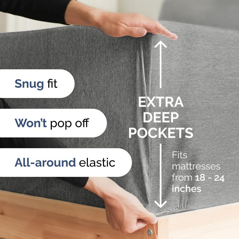Fast Shipping Great Customer Support Satisfaction Guaranteed DESCRIPTION Shipping Shipping Shipping All domestic packages are shipped for Free (Unless other shipping method was selected during the checkout) Most items ship and arrive much sooner than the estimate delivery date. Usually within 2-3 days from payment. However, we have longer estimates to compensate for the occasional delay or supply chain breakdown. We do not accept P.O. BOXES - PLEASE PROVIDE A PHYSICAL ADDRESS Return Return Return In the event that you would like to return your purchase, we allow returns that are processed within the defined return date (the return date is to be found in the return policy/shipping and handling section) Please contact us for a return authorization and the return shipping address. Payment Payment Payment PayPal is our preferred method of payments it's the quickest, easiest and most secure way to pay for your goods or services online. PayPal offers buyer and seller protection should there be a problem. If you do not have a PayPal account, to get started and buy your first item with us is very easy. Simply click on the 'Buy It Now' button and follow the eBay checkout steps. Select PayPal as the payment method you then will be given the chance to enter your card details in to PayPal's secure checkout in order to pay for your order. Once the payment has been made, you will then be given the opportunity to make your own PayPal account to make paying for your items in the future very easy. Should there be a problem with payment please do let us know. Feedback Feedback Feedback Customer satisfaction is very important to us. If you have any problem with your order,please contact us and we will do our best to make you satisfied, please do not leave a negative feedback before we resolve your problem. We guarantee that your issue will be solved quickly. As long as you are happy with your purchase of , please leave us a positive feedback. Your feedback is very important to us it affects our search placement on eBay. We will leave a positive feedback for you in return automatically once we receive your feedback. Contact Us Contact Us Contact Us If you have any queries, please contact us via ebay. We usually respond within 24 hours on weekdays. Thank you for visiting our ebay store! EXTRA DEEP POCKET FULL SHEETS / EXTRA DEEP FITTED FULL SHEETS: These bed sheets are for very deep pocket mattresses. They fit any mattress with pockets that are 18, 20, 21, 22 and 24 inches deep. There's stretchable elastic around the extra deep fitted sheet which stretches for a nice tug around your mattress. Perfect for extra tall & large mattresses. Rest assured these oversized sheets will stay on tight & stay in place! 6 PIECE SHEET SET: This bed sheet set comes with 4 pillowcases total all with a beautiful decorative embroidery design on each pillow case. The pillow cases have enclosure designs. This bedding set will accommodate your extra thick mattress perfectly. GREAT FOR DOUBLE PILLOW TOP MATTRESS: These bed sheets are perfect for mattresses with a 3 inch or 4 inch topper on top, memory foam toppers, big mattress pads, pillow tops, foam toppers, big foam toppers, pillow top mattresses and memory foam. These sheets will not come off! MICROFIBER: These are the softest type of microfiber bed sheets we have created. Super soft with a light feel. Not crisp like cotton. If you're accustomed to cotton sheets and you've never tried microfiber sheets we recommend you give these a try. They're even softer than cotton! DIMENSIONS & SIZES: Flat Sheet 85 wide and 96 long. Fitted sheet 54 wide and 75 long with 21 inch pockets (has elastic so it can stretch). All four pillow cases are oversized 20 x 30 inch. Extra Deep Full Sheet Set 6 Piece Cooling Soft Heathered Grey Bed Sheets Click here to see description Fast Shipping Great Customer Support Satisfaction Guaranteed DESCRIPTION Shipping All domestic packages are shipped for Free (Unless other shipping method was selected during the checkout) We ship within two business days of payment, usually sooner Standard FREE shipping takes between 3-5 business days Expedited shipping takes between 2-3 business days Overnight shipping takes between 1-2 business days We do not accept P.O. BOXES - PLEASE PROVIDE A PHYSICAL ADDRESS We Ship Globally using ebay's GSP, the item is sent to a logistic center in KY and shipped from there to the rest of the world. International customers are responsible for all duties and taxes Contact your local authority for questions related to the amount of duties or taxes you will be responsible for Return In the event that you would like to return your purchase, we allow returns that are processed within the defined return date (the return date is to be found in the return policy/shipping and handling section) Please contact us for a return authorization and the return shipping address. Please contact us for a Return Merchandise Authorization (RMA) number. We advise you to use a reputable carrier service when returning your goods. Please pack all returns appropriately. We ship globally Via eBay's global shipping program (GSP). Thus we don't cover returns for items shipped globally. Buyers returning such items will be refunded ONLY for the item's cost and not for the shipping. please check the Voltage information and make sure it matches the one in your country. In case it's not stated in the description, do ask us. Payment PayPal is our preferred method of payments it's the quickest, easiest and most secure way to pay for your goods or services online. PayPal offers buyer and seller protection should there be a problem. If you do not have a PayPal account, to get started and buy your first item with us is very easy. Simply click on the 'Buy It Now' button and follow the eBay checkout steps. Select PayPal as the payment method you then will be given the chance to enter your card details in to PayPal's secure checkout in order to pay for your order. Once the paym