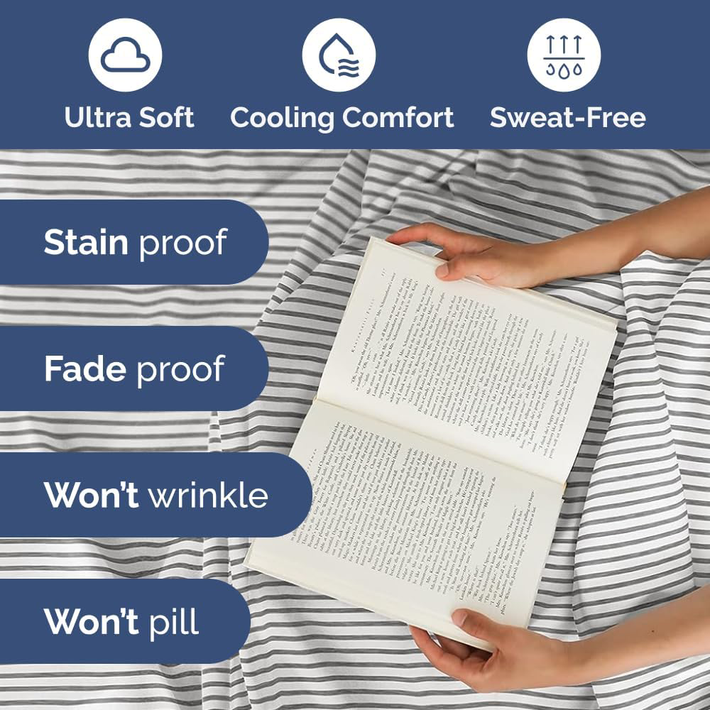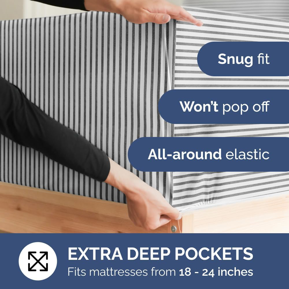 Fast Shipping Great Customer Support Satisfaction Guaranteed DESCRIPTION Shipping Shipping Shipping All domestic packages are shipped for Free (Unless other shipping method was selected during the checkout) Most items ship and arrive much sooner than the estimate delivery date. Usually within 2-3 days from payment. However, we have longer estimates to compensate for the occasional delay or supply chain breakdown. We do not accept P.O. BOXES - PLEASE PROVIDE A PHYSICAL ADDRESS Return Return Return In the event that you would like to return your purchase, we allow returns that are processed within the defined return date (the return date is to be found in the return policy/shipping and handling section) Please contact us for a return authorization and the return shipping address. Payment Payment Payment PayPal is our preferred method of payments it's the quickest, easiest and most secure way to pay for your goods or services online. PayPal offers buyer and seller protection should there be a problem. If you do not have a PayPal account, to get started and buy your first item with us is very easy. Simply click on the 'Buy It Now' button and follow the eBay checkout steps. Select PayPal as the payment method you then will be given the chance to enter your card details in to PayPal's secure checkout in order to pay for your order. Once the payment has been made, you will then be given the opportunity to make your own PayPal account to make paying for your items in the future very easy. Should there be a problem with payment please do let us know. Feedback Feedback Feedback Customer satisfaction is very important to us. If you have any problem with your order,please contact us and we will do our best to make you satisfied, please do not leave a negative feedback before we resolve your problem. We guarantee that your issue will be solved quickly. As long as you are happy with your purchase of , please leave us a positive feedback. Your feedback is very important to us it affects our search placement on eBay. We will leave a positive feedback for you in return automatically once we receive your feedback. Contact Us Contact Us Contact Us If you have any queries, please contact us via ebay. We usually respond within 24 hours on weekdays. Thank you for visiting our ebay store! EXTRA DEEP POCKET KING SHEETS / EXTRA DEEP FITTED KING SHEETS: These bed sheets are for very deep pocket mattresses. They fit any mattress with pockets that are 18, 20, 21, 22 and 24 inches deep. There's stretchable elastic around the extra deep fitted sheet which stretches for a nice tug around your mattress. Perfect for extra tall & large mattresses. Rest assured these oversized sheets will stay on tight & stay in place! 6 PIECE SHEET SET: This bed sheet set comes with 4 pillowcases total all with a beautiful decorative embroidery design on each pillow case. The pillow cases have enclosure designs. This bedding set will accommodate your extra thick mattress perfectly. GREAT FOR DOUBLE PILLOW TOP MATTRESS: These bed sheets are perfect for mattresses with a 3 inch or 4 inch topper on top, memory foam toppers, big mattress pads, pillow tops, foam toppers, big foam toppers, pillow top mattresses and memory foam. These sheets will not come off. MICROFIBER: These are the softest type of microfiber bed sheets we have created. Super soft with a light feel. Not crisp like cotton. If you're accustomed to cotton sheets and you've never tried microfiber sheets we recommend you give these a try. They're even softer than cotton! DIMENSIONS & SIZES: Flat Sheet 111 wide and 102 long. Fitted sheet 78 wide and 80 long with 21 inch pockets (has elastic so it can stretch). All four pillow cases are oversized 20 x 40 inch. Extra Deep King Sheet Set - 6 Piece Breathable Cooling Sheets - Grey Striped Click here to see description Fast Shipping Great Customer Support Satisfaction Guaranteed DESCRIPTION Shipping All domestic packages are shipped for Free (Unless other shipping method was selected during the checkout) We ship within two business days of payment, usually sooner Standard FREE shipping takes between 3-5 business days Expedited shipping takes between 2-3 business days Overnight shipping takes between 1-2 business days We do not accept P.O. BOXES - PLEASE PROVIDE A PHYSICAL ADDRESS We Ship Globally using ebay's GSP, the item is sent to a logistic center in KY and shipped from there to the rest of the world. International customers are responsible for all duties and taxes Contact your local authority for questions related to the amount of duties or taxes you will be responsible for Return In the event that you would like to return your purchase, we allow returns that are processed within the defined return date (the return date is to be found in the return policy/shipping and handling section) Please contact us for a return authorization and the return shipping address. Please contact us for a Return Merchandise Authorization (RMA) number. We advise you to use a reputable carrier service when returning your goods. Please pack all returns appropriately. We ship globally Via eBay's global shipping program (GSP). Thus we don't cover returns for items shipped globally. Buyers returning such items will be refunded ONLY for the item's cost and not for the shipping. please check the Voltage information and make sure it matches the one in your country. In case it's not stated in the description, do ask us. Payment PayPal is our preferred method of payments it's the quickest, easiest and most secure way to pay for your goods or services online. PayPal offers buyer and seller protection should there be a problem. If you do not have a PayPal account, to get started and buy your first item with us is very easy. Simply click on the 'Buy It Now' button and follow the eBay checkout steps. Select PayPal as the payment method you then will be given the chance to enter your card details in to PayPal's secure checkout in order to pay for your order. Once th