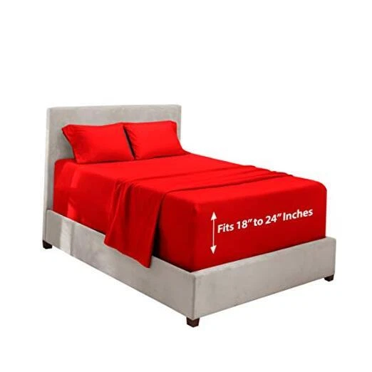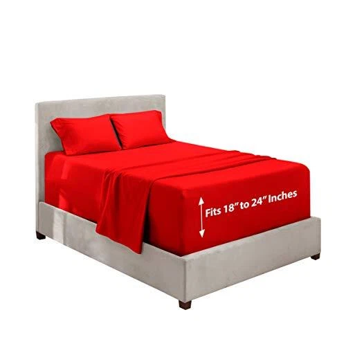 Return Policy Fast Delivery Trusted seller Extra Deep Pocket Full Sheets - 4 Piece Hotel Luxury Full Sheet Set Fits Up to 24" Mattress - Ultra Soft Luxury Full Bed Sheet Set - Soft & Breathable, Full, Cherry Red Product Description Microfiber Full Size: Includes 1 extra deep pocket fitted sheet, 1 flat sheet and 2 pillow cases. Deep pocket fitted sheet measures 54 inches x 75 inches and fits mattresses 18-24 inches deep. Flat sheet measures 81 inches x 96 inches. Pillow cases measure 20 inches x 30 inches. Hotel-quality fitted bedding is woven from the highest quality microfiber material, double brushed on both sides for ultimate softness and comfort. Deep pocket sheets fit deep pocket 18 inch, 20 inch, 21 inch, 22 inch and 24 inch mattresses. These are the best sheets for extra tall & large mattresses and fits well matresses with 3 inch or 4 inch memory foam mattress toppers or big mattress pads Resistant to pilling and snagging, our sheets are pet-friendly and made to last. Our fabulous selection of vibrant colors won’t fade after washing. Fade, stain, shrink and wrinkle resistant. Machine washable in cold, dries quickly on tumble dry low temperature. Shipping Returns Payment Shipping Shipping is FREE to all addresses other than APO/PO boxes in the lower 48 states. All our stock ships from US-based warehouses. Shipped via USPS or UPS (depending on location and package weight) Unless stated otherwise, all orders will ship within 24-72 hours of your payment being processed. Check our feedback to see the great reviews of FAST shipping we offer. Returns Seller does not accept returns Payment We currently accept payment via eBay managed payments only. Once payment is cleared, we will dispatch your shipment within 1-3 business days. Please refer to the "Shipping" tab for more information regarding shipping speed to your destination.