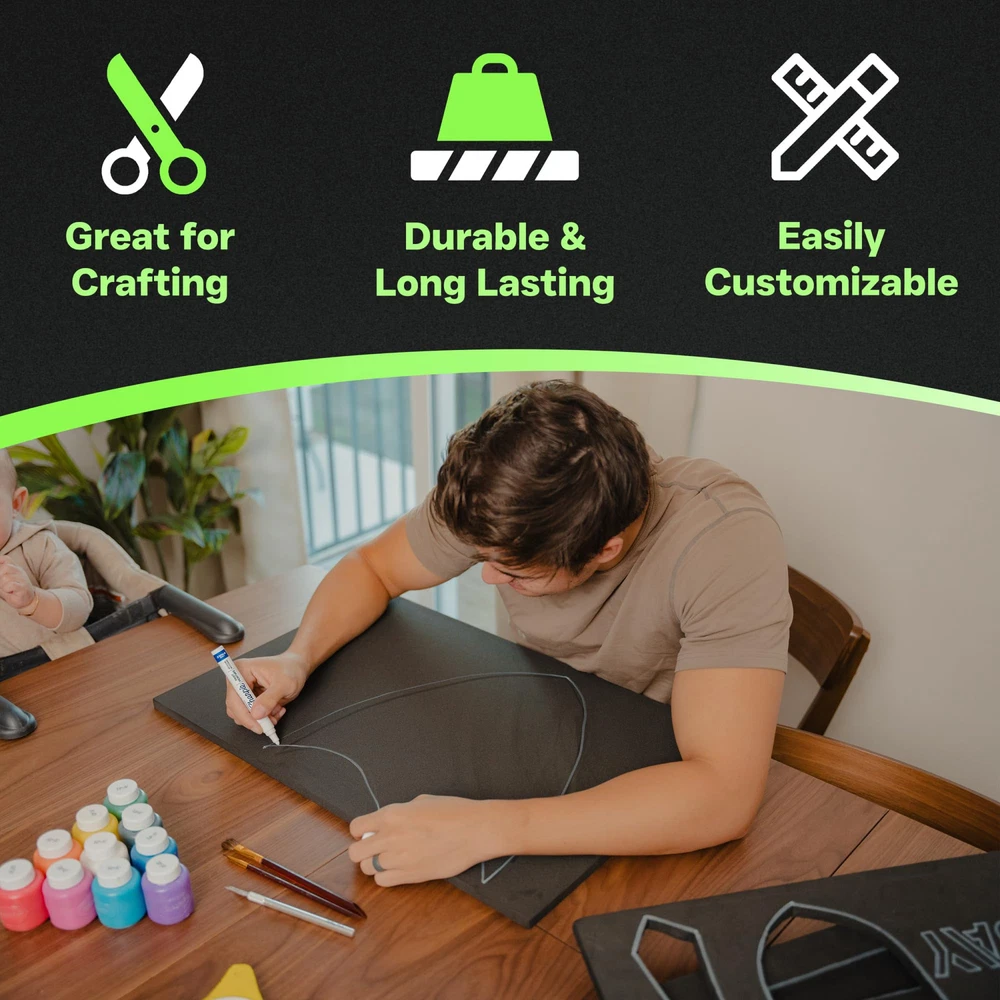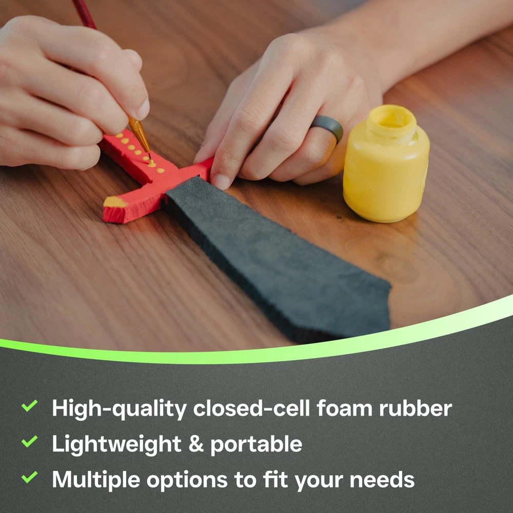 Versatile Material - closed cell foam rubber material offered in various thicknesses and sizes for all of your project needs Sound Dampening Tiles - Some use these for sound dampening foam rubber tiles for various situations Easy To Customize - To fit the needs of your project, whether using this material for cosplay foam, craft foam sheets, neoprene gasket DIY, padding, tool box liner and many other options. Foam Padding Sheets - High density black foam sheet Antivibration Padding - Useful to customize and use in various scenarios in which you require some extra sound dampening material. This product is non-adhesive, but we do offer various options with adhesive as well Extra Large Rolls Sheets with and without adhesive Tool box liners, foam rubber padding, foam sheets for various uses. Crafting foam, drawer padding, foam rolls and sheets. - We love your feedback on your various applications and uses and how our material worked for your project. Please help us to improve and grow if you have any feedback you would like to share with the team. offers various closed cell neoprene rubber products and is continuing to add colors and various options to fit your project needs