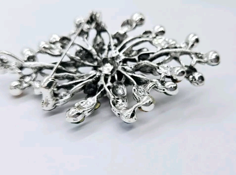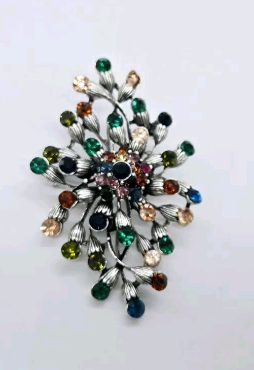 Extra Large Multicolor Crystal Flower Brooch Scarf Pin Silver Tone
