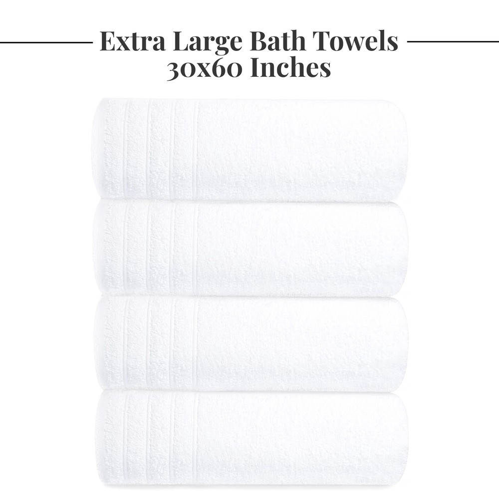 Pack of 4 Extra Large Bath Towels 30 x 60 Inches, 100% Cotton, Larger & Lighter Weight, Quicker to Dry, Super Soft and Absorbent, Perfect for Bathroom, White Light Weight and not too thick: The reduced thickness makes it more convenient to carry, allows for quick drying & is energy efficient Larger: This package contains four generously sized bath towels, each measuring 30 x 60 inches, perfect to wrap yourself in Designed in Super Fine Cotton to provide a softer texture and feel Wash before first use. Wash them on their own, use mild detergent and avoid bleach & fabric softeners. Refrain from ironing Use tumble dry on low heat. Over-drying towels can increase linting and reduce lifespan of towels. Shedding is natural on initial wash/dry cycles Super Fine Cotton for Extra Softness: We have used super fine cotton in making these towels so that you feel relaxed and refreshed after wrapping yourself in a soft, absorbent, and fluffy towel after your shower, just like with a hotel towel. Extra Soft and Highly Absorbent Luxury Bath Towels: These shower towels are perfect for your daily routine. They are the ideal weight for extra absorbency features. Use this set by for lighter weight, extra softness, fluffiness and quickness in absorbency to fulfill your daily needs. Pack of 4 Bath Towels Set: This bathroom towel set contains a pack of 4 extra-large bath towels that are perfect for your household’s daily needs. Oekotex Certified and Made in Green: To give you and your family the best care, the products at are manufactured with OEKOTEX and Made in Green certifications. The Made in Green label gives you the assurance that our products have been made with materials that have been tested for harmful substances, in environmentally friendly facilities, and in safe and socially responsible workplaces. Top Quality Standards: We take our quality control seriously. From raw materials to production, finished goods, and even packaging, all materials are all passed through rigorous checks placed at every step in our production facilities. The benchmark criteria for our quality control checklists are high. We take extra care to ensure that our customers are happy and satisfied with our product. Best in Durability: We use high quality materials to improve the durability of our towels and to make them long lasting so that they are ideal for your everyday use. Measurement: Extra Large Bath Towel: 30 x 60 inches Shipping We offer FREE shipping on all orders! We ship within Three business days of payment, usually sooner. We use a selection of shipping services such as UPS, FedEx, USPS etc. We only ship to the lower 48 states, no APO/FPO addresses or PO Boxes allowed. Local pickups and combined shipping options are not provided at this time. Return You can return a product for up to 30 days from the date you purchased it. Any product you return must be in the same condition you received it and in the original packaging. Please keep the receipt. Payment We accept payment by any of the following methods: PayPal Please pay as soon as possible after winning an auction, as that will allow us to post your item to you sooner! Feedback Customer satisfaction is very important to us. If you have any problem with your order, please contact us and we will do our best to make you satisfied. Contact Us If you have any queries, please contact us via ebay. We usually respond within 24 hours on weekdays. Please visit our eBay store to check out other items for sale! Thank you for shopping at our store.