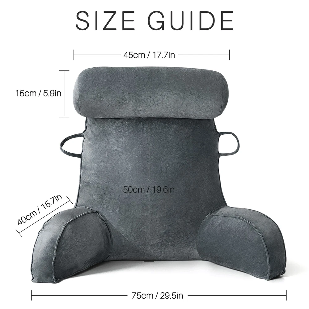 Similar Items Description This reading pillow is an oversized pillow with arms that provides exceptional comfort, relief from aches and pains, and a better sitting posture. Reading pillows conform to the back and arms whether the child’s sitting in bed, or on a chair, couch or the floor. Supports back & arms when reading, watching TV, or relaxing: Filled high quality pure fiber,velvet cover is soft and breathable Bigger and taller size for the ultimate comfort: Overstuffed pillow for a cozy and secure feeling Versatile and convenient: Use it everywhere: bed, chair, couch, floor – two handles are designed on the side makes it easy to carry Reduces aches and pains: Promotes proper posture and lumbar support with arm rests for holding a book, video game controller or tablet As one of the perfect gift choices: it is suitable for adults, teenagers, fathers, mothers, grandpas, grandma, pregnant, etc. Specification: Reading Pillow Size: 75cm * 40cm * 50cm Special Feature:Durable Size:Large Fill Material:Polyester Age Range (Description):Kid / Andult Recommended Uses For Product Reading Use for:Head, Neck Material:Polyester Item Firmness:Soft Number of Pieces:1 Pattern:Solid Multiple use-this back cushion can be put anywhere, such as your bed, sofa, car, office and etc. Washing: Care instructions Hand wash. Do not bleach. Tumble dry, low temperature. Do not iron. Package include: 1 x Reading Bed Rest Pillow Notice: 🔥1. Due to manual measurement, please allow 1-3mm error, thanks. 🔥2. Do not use bleach or wash with same/similar colors 🔥3. Due to the light when the photo was taken or the monitor's display, the picture may not reflect the actual color of the item. We guarantee the style is the same as the picture.