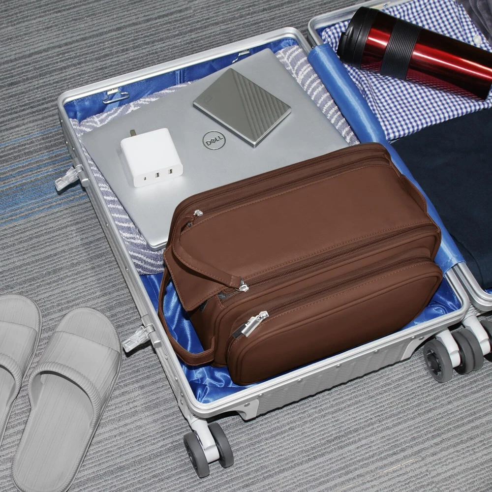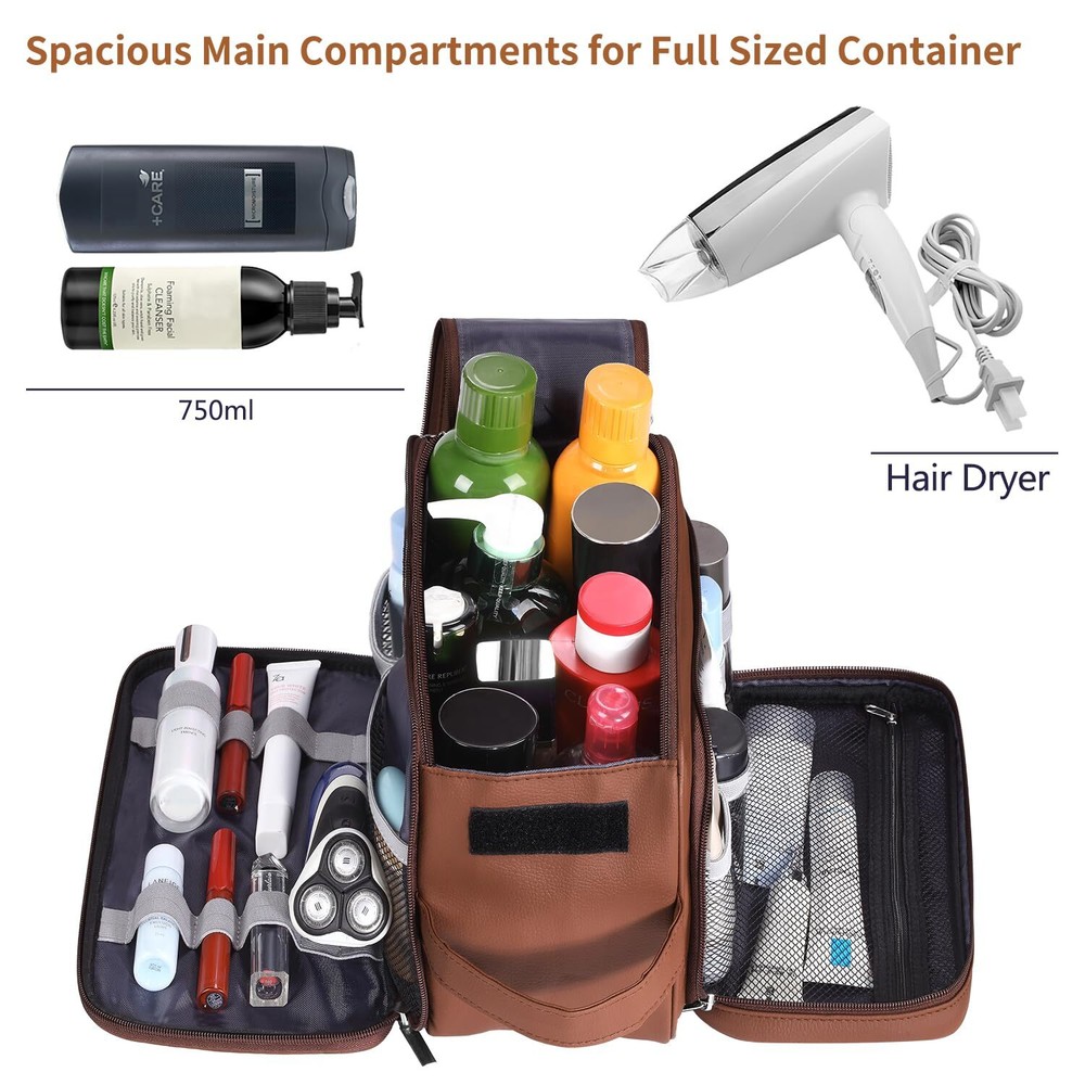 BURUIS Extra Large Toiletry Bag for Men, Travel Toiletry Organizer Dopp Kit Water-resistant Shaving Bag, PU Leather Cosmetic Organizer Bathroom Shower Bag for Toiletries, Grooming, Accessories (Brown) DURABLE MATERIAL: Our men's toiletry bag is crafted from premium, water-resistant PU leather, guaranteeing exceptional durability. Its sturdy construction and high-quality materials ensure it can withstand the test of time. This water-resistant feature not only provides protection against spills and splashes but also makes it effortless to clean with just a quick wipe. With reinforced stitching, this toiletry bag is designed to hold all your essentials securely, without any worries WIDE OPENING FOR EASY ACCESS: Our toiletry kit boasts a user-friendly design, when you pull the dual zippers, the bag opens wide, granting quick access to your items. No more rummaging through cluttered bags. This time-saving feature is perfect for individuals with on-the-go lifestyles, streamlining your daily routine UPGRADED LARGE CAPACITY: With dimensions of 12 x 7.5 x 7 inches, this toiletry bag offers abundant room to organize your grooming essentials. Multiple compartments ensure your shaving gear, personal items, and cosmetics are neatly arranged. Say goodbye to the hassle of searching for items - they're all at your fingertips HANDY DESIGN FEATURES: Crafted with your comfort and ease in consideration, this travel toiletry bag equipped with a leather handle, making it easy to carry and grab. Inside, elastic straps keep bottles upright and secure, preventing spills. The double zipper compartment allows quick access, even without fully opening the bag.it's an ideal companion for both business trips and vacations, effortlessly merging functionality with style, suitable for both men and women PERFECT GIFT: This leather travel pouch is a thoughtful and versatile gift. Whether it's for a birthday, anniversary, Mother's Day, or Christmas, our toiletry bag is a fantastic choice. It seamlessly blends functionality with timeless design, guaranteeing it will be a cherished and practical present for any special occasion SHIPPING Domestic Buyers - We have confidence in our products, but if you are not fully satisfied please contact us within 30 days of purchase and you will get full refund. - We ship within 3 business days of payment, usually sooner - We offer FREE shipping on all orders! - We only ship to the lower 48 states, no APO/FPO addresses or PO Boxes allowed International buyers – please note: Import duties, taxes, and charges aren't included in the item price or postage cost. These charges are the buyer's responsibility. - Please check with your country's customs office to determine what these additional costs will be prior to bidding or buying. * Order Cancellation Policy ** You can return a product for up to 30 days from the date you purchased it. 1. The seller reserves the right to cancel the special case only due to eBay cancellation fee. 2. The decision of seller is the final. 3. The seller will respond to the cancellation request within 2 business days. Please wait for the result of cancellation. 4. In case the cancellation is not completed by some reasons, the buyer can follow the options below to get the refund. 4.1 The buyer can reject the item when it arrives. 4.2 The buyer can send the item back to the seller within 30 days If the buyer receives item (USA Shipment ONLY). The seller will provide the FREE return label to the buyer when the buyer opens " Return Item" case on eBay by using the reason as "Change my mind" ONLY. 5. When buyer has placed the order. The order will be processed and completed by automatic warehouse system within 5 minutes. In case that buyer sends the cancellation request after 5 minutes of placing the order, the request will be rejected. **Sending direct message to cancel the order is not allowed for every case.* Return Policy For the return case - If buyer would like to return the items for refund or replacement, please CONTACT SELLER to receive the free return label from seller. The refund or replacement will be processed with the tracking number of return label which is provided by seller only. The other ways of return which are not approved by seller will not be processed for the refund or replacement.