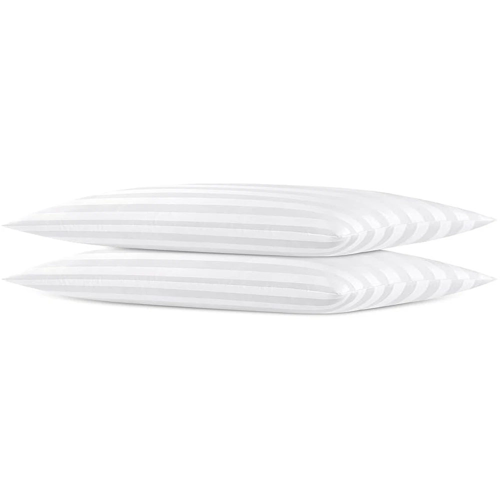 Extra Thin Flat Soft Low Pillows Standard Size Set of 2, Down Alternative Filled Bed Pillows for Side Back and Stomach Sleepers 20x26 SOFT FLAT COMFY BED PILLOW:Our bed pillows covers are made of high-quality microfiber fabric material,exquisite striped design filled with a soft 3D down alternative,800 GSM filling allows the pillow to provide soft medium support and plenty of comfort for your head, neck and shoulders. NO-SHIFT CONSTRUCTION:The no-shift construction ensures that the pillow will not collapse or clump,Whether you're side sleepers,stomach sleepers or back sleepers,the soft touch and quality construction both provide a comfortable sleep experience all night long. OEKO-TEX:OEKO-Tex Certified.All product materials have been carefully selected and rigorously tested,in line with safety and environmental standards so that you can rest easy! EASY CLEAN & CARE:After removing the ergonomic pillow from the package,please squeeze and rub the pillows for three minutes, then put it into the washing machine,cold water washing and tumble dry with low heat,achieve optimal fluffiness.Please do not iron or dry clean. SATISFACTION GUARANTEED:We are dedicated to providing exceptional customer support. Ensuring you wake up refreshed and energized. Crafted with premium ultra-fine fiber fabric and featuring a sophisticated stripe design,this pillow offers a blend of comfort and style.The non-shifting structure ensures that the pillow will not sag or clump, allowing for a comfortable and peaceful night's sleep whether you're a side,stomach, or back sleeper. It is the perfect companion for your restful nights.Sleep soundly, knowing that your comfort and well-being are our top priorities.These medium density pillows are perfect for all sleep positions. SHIPPING - We offer FREE shipping on all orders! - We ship within 3 business days of payment, usually sooner - We use a selection of shipping services such as UPS, FedEx, USPS etc - We only ship to the lower 48 states, no APO/FPO addresses or PO Boxes allowed International buyers – please note: Import duties, taxes, and charges aren't included in the item price or postage cost. These charges are the buyer's responsibility. - Please check with your country's customs office to determine what these additional costs will be prior to bidding or buying. - We have confidence in our products, but if you are not fully satisfied please contact us within 30 days of purchase and you will get full refund. * Order Cancellation Policy ** You can return a product for up to 30 days from the date you purchased it. 1. The seller reserves the right to cancel the special case only due to eBay cancellation fee. 2. The decision of seller is the final. 3. The seller will respond to the cancellation request within 2 business days. Please wait for the result of cancellation. 4. In case the cancellation is not completed by some reasons, the buyer can follow the options below to get the refund. 4.1 The buyer can reject the item when it arrives. 4.2 The buyer can send the item back to the seller within 30 days If the buyer receives item (USA Shipment ONLY). The seller will provide the FREE return label to the buyer when the buyer opens " Return Item" case on eBay by using the reason as "Change my mind" ONLY. 5. When buyer has placed the order. The order will be processed and completed by automatic warehouse system within 5 minutes. In case that buyer sends the cancellation request after 5 minutes of placing the order, the request will be rejected. **Sending direct message to cancel the order is not allowed for every case.* Return Policy For the return case - If buyer would like to return the items for refund or replacement, please CONTACT SELLER to receive the free return label from seller. The refund or replacement will be processed with the tracking number of return label which is provided by seller only. The other ways of return which are not approved by seller will not be processed for the refund or replacement. CUSTOMER SERVICE - We try our best to make sure every customer is completely satisfied. - If there's a problem, feel free to message us! - We're happy to help.