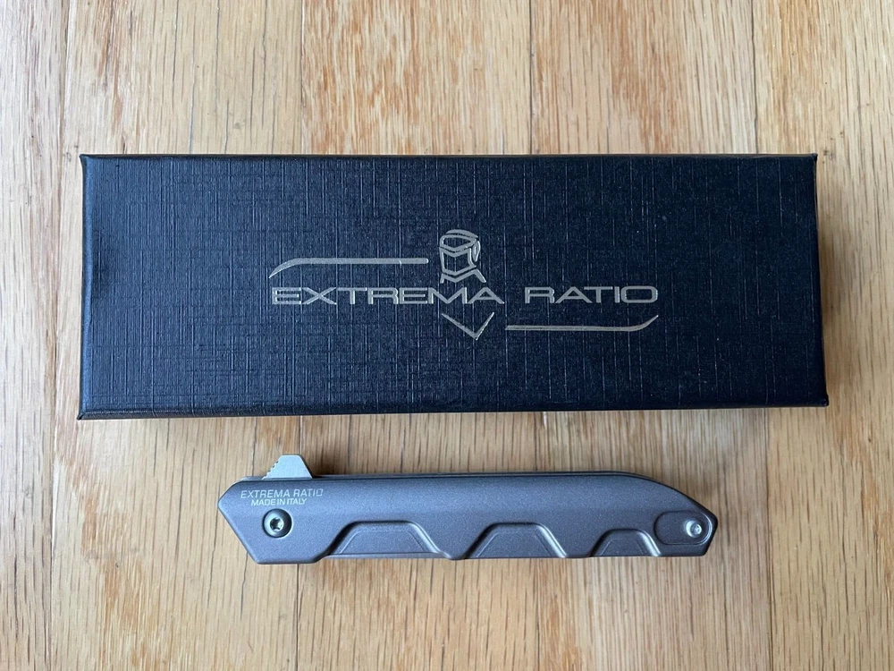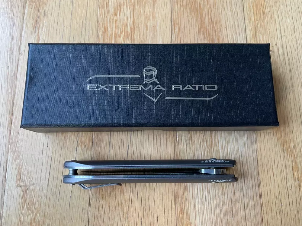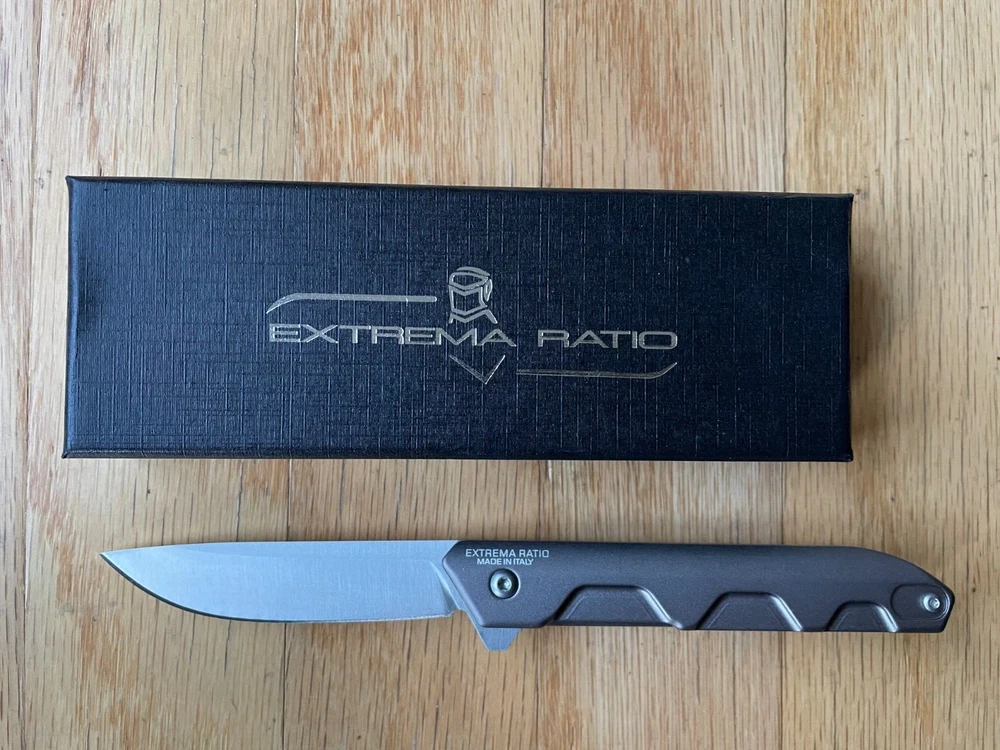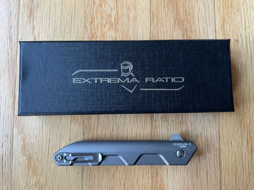 Ferrum E is a simple, essential and functional EDC (Every Day Carry) folding knife. It has a drop point blade and a slim and compact shape. The two anodized heat treated anticorodal aluminum handle scales make its grip light, slim as well as durable. It can be placed in a pocket, in small flashlight holsters or in a single M.O.L.L.E. system webbing. It comes with a flipper assisted opening. The blade rotates on ball bearings resulting in a fluid and firm movement. This mechanism allows the user an easy and rapid opening of the blade, even with just one hand. The locking mechanism is the time-tested liner lock. The reversible clip is located on the back. Ferrum E is available in two versions, both with satin blade finishing. Ferrum E Tactical Mud comes with a brand-new anodized grey-green handle finishing. Buy with confidence with our, 30 Day Return policy if you are not completely satisfied.