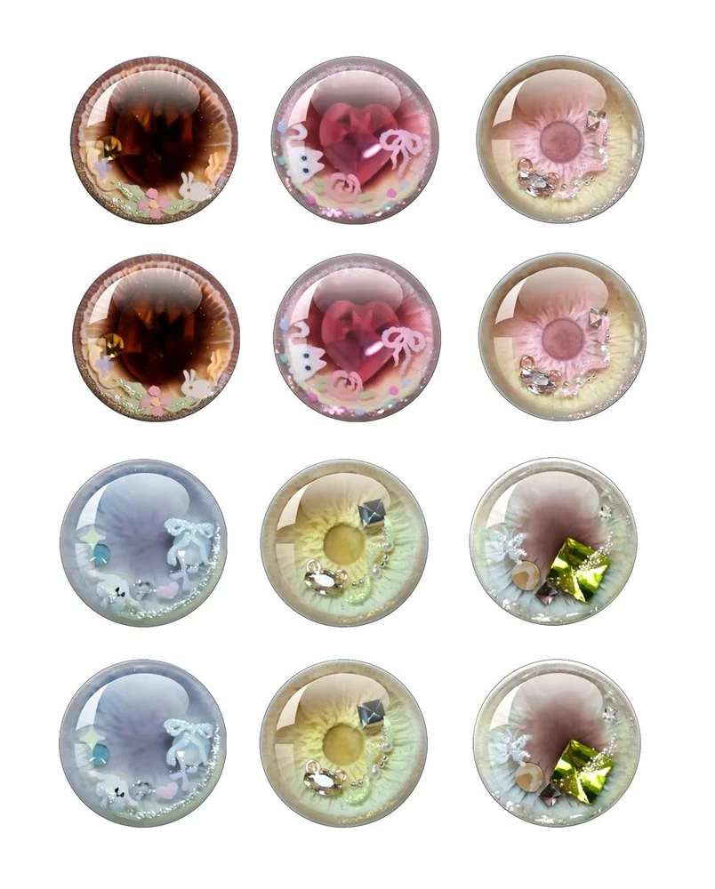 Eye Chips Retina for 12" Blythe Doll Set 6 Pairs Thin Glass Accessories Toy Gift Size : 14 mm Thickness : suitable for 12" Blythe doll Packing : 6 pairs/bag (each Eye Chip pair different color) It is only Eyes Chips , no doll no other accessories .