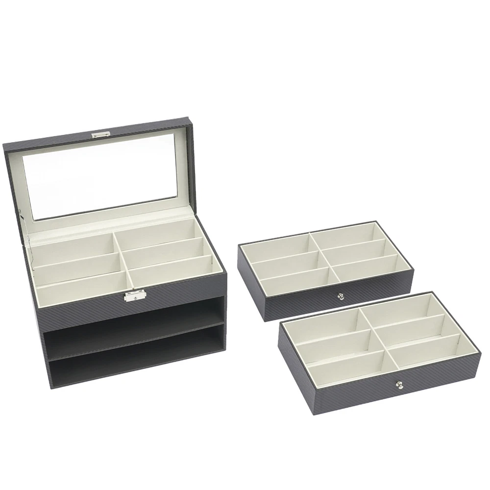 Descriptions: This sunglasses storage box is designed for storing sunglasses and eyeglasses. Drawer type with three layers 18 grids design, convenient and practical to save space, helpful for keeping home clean Applications: counters, eyeglasses, home, holiday gift, etc. Features: - Durable materials The box adopts density board, carbon fiber PU, metals and glass, stable and reliable to use - Drawer type Three layers design with two drawers and a top storage box, can effectively save space - 18 separated grids Easy layer has 6pcs grids, convenient to store glasses separately - Top glass cover design Simple and beautiful, the sunglasses can be displayed clearly, with metal support design, stable and reliable - Lock design Lock design can effectively protect the glasses from lo Eye Glasses box Eyewear Sunglass Display Storage Box Holder Organizer 18 Slots Description 18 Slot Eyeglass Sunglass Storage Box Glasses Display Case Organizer Descriptions: This sunglasses storage box is designed for storing sunglasses and eyeglasses. Drawer type with three layers 18 grids design, convenient and practical to save space, helpful for keeping home clean Applications: counters, eyeglasses, home, holiday gift, etc. Features: - Durable materials The box adopts density board, carbon fiber PU, metals and glass, stable and reliable to use - Drawer type Three layers design with two drawers and a top storage box, can effectively save space - 18 separated grids Easy layer has 6pcs grids, convenient to store glasses separately - Top glass cover design Simple and beautiful, the sunglasses can be displayed clearly, with metal support design, stable and reliable - Lock design Lock design can effectively protect the glasses from loss, safe and practical Package weight: 3.08kg Package Size(L x W x H): 35 x 21 x 24.5 cm Package : 1 x Sunglasses Storage Box Payment Delivery details Terms of sales About us Contact us Payment We accept ebay payment 。 Fees such as import duties, taxes are not included in the item price or shipping costs. These charges are the buyer's responsibility. Delivery details Shipping: 2-9 working days to: USA Terms of sales We maintain high standards of excellence and strive for hundred percent customer satisfaction. Feedback is very important to us. We hope that you contact us immediately before you give neutral or negative feedback, so that we can address your concerns. It is impossible to address issues if we do not know about them! About us Your satis faction is our ultimate goal. We work hard to earn your trust and future business. Our certified technicians have tested each item before shipping. The unit comes with 1 year limited warranty on all manufacturing defects. a) If you receive a defective item, you may return it or ask for a discount. Please contact us within 14 days after you receive the package. b) What you returned must be intact and in its original packaging as re? u. Customer is responsible for shipping costs of the returned item. c) We will cover the cost of shipping back t with the shipping rate indicated in the registration page. We will send you a new unit or refund the full payment you paid. Thank you. Contact us Business Hour Business Hour: Monday To Friday: 8:30 AM to 5:00 PM (Beijing China time) Due to time zones, our reply to your questions may not be immediately. But within above working time, we will reply your email within 24 hours. If it's non-workdays, please kindly be patient and wait till Monday. Please contact us with ebay message. Please feel free to contact us if you have any questions. Monday To Friday: 8:30 AM to 5:00 PM (Beijing China time) Due to time zones, our reply to your questions may not be immediately. But within above working time, we will reply your email within 24 hours. If it's non-workdays, please kindly be patient and wait till Monday. Please contact us with ebay message. Please feel free to contact us if you have any questions. On Feb 5, 2025 at 19:39:18 PST, seller added the following information: