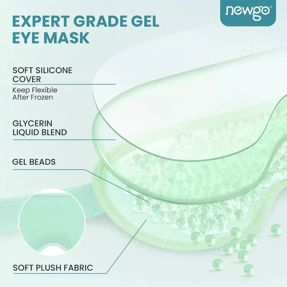 About this item Fast Relief for Eyes Discomfort - Whether you are looking to get relief from puffy eyes, post eye surgery, dry eyes, headaches, or just pamper yourselves and get relaxation, our gel eye mask is here to help! Use our gel eye mask to create a cold compress for relieving puffy eyes, dark circles, headaches, migraines, tired eyes, or as a hot eye mask to reduce swelling, dry eyes. Varying Levels of Cooling Effect with Reversible Double-Sided Design - NEWGO Ice pack cooling eye mask is made with medical grade plastic on one side and soft plush fabric on the other side to provide two kinds of different temperatures using experience. The soft plush side allows direct-skin use and provides spa-like experience, or choose the other side for direct colder experience. Adjustable Fit - Our eye ice mask equipped with adjustable head strap,making the hot cold eye mask fits to different head shapes and are suitable for women, men, kids,especially for those one who want to relax and unwind after a long day. Strap around the head and you don’t have to hold it on and firmly stay on your eyes. Hot & Cold Therapy - Just simply put the store eye compress in the freezer for 2 hours for 10-15 minutes cold therapy as therapist recommended, or heat it in the microwave for 10s for heat therapy. Eye mask comes with resealable storage bag helps to isolate the fridge odor or to keep it clean when not in use. Soft and Comfortable - The flexible gel beads will remain pliable and comfortably conform to the shape of your face while offering soothing pain relief and a truly enjoyable, relaxing experience. and effective relief from eyes discomfort.
