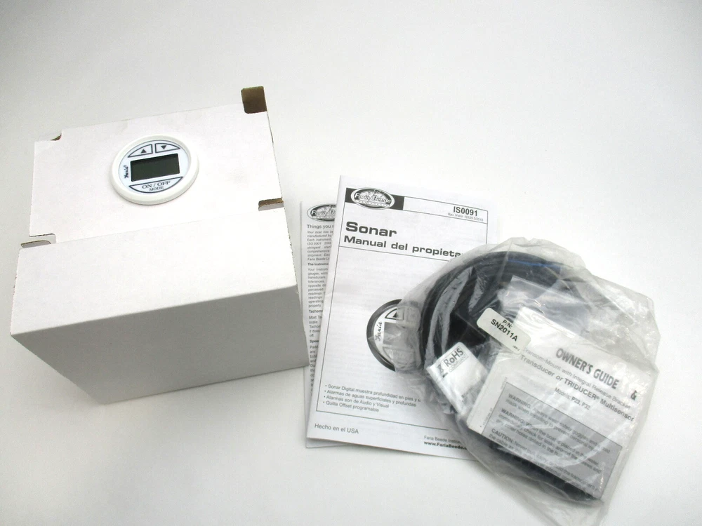 F13150 Faria Depth Sounder Transom Mounted Transducer with 199' of Depth Range SKU: GB668189278 Brand: Faria Color: Black Condition: New MPN: F13150 warehouse: T153F For sale is one new Faria Depth transducer made by Airmar. Comes with the Faria high performance in-dash digital depth sounder backlit display and everything you see pictured This is Faria part number: F13150 Transducer Airmar part number: SN2011A Key Features: 199' of depth range Warning alarms both audible and visual for both deep and shallow water. Keel offset can be programmed at the display. Back-lit display screen for ease of use at night. United States standard units (Metric) Simple to set up. Transducer, 20-foot cable, and mounting hardware are all included. Mounts in a standard gauge mounting hole of 2-1/16". Thank you for shopping at our store!! Check out the other items in our store. We offer the most used Stern Drive & Outboard parts in Wisconsin! Christine