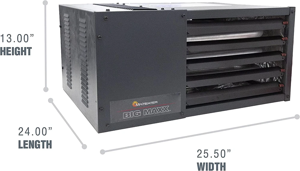 Store New Arrivals Add to Favorite View Feedback Contact F260550 Big Maxx MHU50NG Natural Gas Unit Heater,Black Description Item model number F260550 Warranty Description 3 year limited on heater parts, 10 year limited on heat exchanger Assembly required Yes Style Heater Fuel Type Natural Gas Department Unisex-Adult Import Imported Power Source propane Heating Method Forced Air Room Type Bedroom, Living Room, Home Office Batteries required No Care instructions See product manual Burner type Radiant Heating Coverage 1250 sq ft Is Discontinued By Manufacturer No Indoor/Outdoor Usage Indoor Item Weight 66 Pounds Heat Output 50000 British Thermal Units Item Weight 66 pounds Special Feature High temperature safety shut-off switch Mounting Type Ceiling Mount Color Black Form Factor Mat Global Trade Identification Number 00089301605503 Recommended Uses For Product Garage Included Components heater, thermostat, NG to LP conversion kit, mounting brackets, owner's manual Product Dimensions 15"D x 29"W x 26"H Number of pieces 1 50,000 BTU per hour heats up to 1250 sq. ft. Powered exhaust allows for vertical or horizontal venting Easy outside access to thermostat and A/C terminals and gas connection Natural Gas to Liquid Propane conversion kit and 2 angle brackets for ceiling mount included Minimum 8 ft clearance from floor to base of heater required; Limited 3 year warranty on parts and burners and 10 year warranty on any defects in the heat exchanger If you are looking to turn your garage or barn into a work space you can use all year-round, you will have to find a safe quiet and reliable heat source. This 50,000 BTU Natural Gas Unit heater is the way to go. It uses a built-in electric high velocity fan to pull cool air into the rear of the heater, across a heat exchanger, then forcing warm air into the surrounding areas. These heaters only require 115v AC power and can be vented vertically or horizontally - please check local codes and restrictions. With a mounting clearance of only 1 inch, the supplied brackets, external access to power, and thermostat connections - installation is a cinch. With the Durable Spark ignition and robust factory standard self-diagnostic control module, we can offer a 3 year factory warranty on all parts and burners and a 10 year warranty on any defects in the heat exchanger. This heater offers the operating versatility and safety that you have come to expect from Mr. Heater. ABOUT US We offer the best prices around on high quality products. Our E-store includes media such as books, movies, music and games while offering electronics, toys, sporting apparel, clothing, tools, general home, garden items and more. SHIPPING We are always working hard to ensure your package arrives as soon as possible. Please understand that some factors like weather, high postal traffic, and the performance of shipping companies are outside of our control. We offer free shipping to the lower 48 states and ship within 2 business days of payment, usually sooner. We do not accept P.O. Boxes. Please provide a physical address. For shipping outside of the continental USA, we only use eBay's Global Shipping Program.The item is shipped to KY and then sent to the rest of the world. International customers are responsible for all duties and taxes. Continue to check out in order to calculate costs for shipping the item to your country. Messages regarding eBay's Global Shipping Program MUST be directed at eBay EXCLUSIVELY. RETURNS We offer a 30-Day Return Policy on items which you are not completely satisfied with. You have the option for a full-refund or an exchange of the item. No returns are available on items shipped outside of the USA. PAYMENT We accept PayPal. CONTACT US This page content is yet to come Please ad us to your favorite seller and visit again later Thank You CUSTOMER SATISFACTION We try our very best to make sure every customer is completely satisfied. If there's a problem, message us! We're happy to help. WE ACCEPT Copyright © 2021 AutoDS. | All Rights Reserved