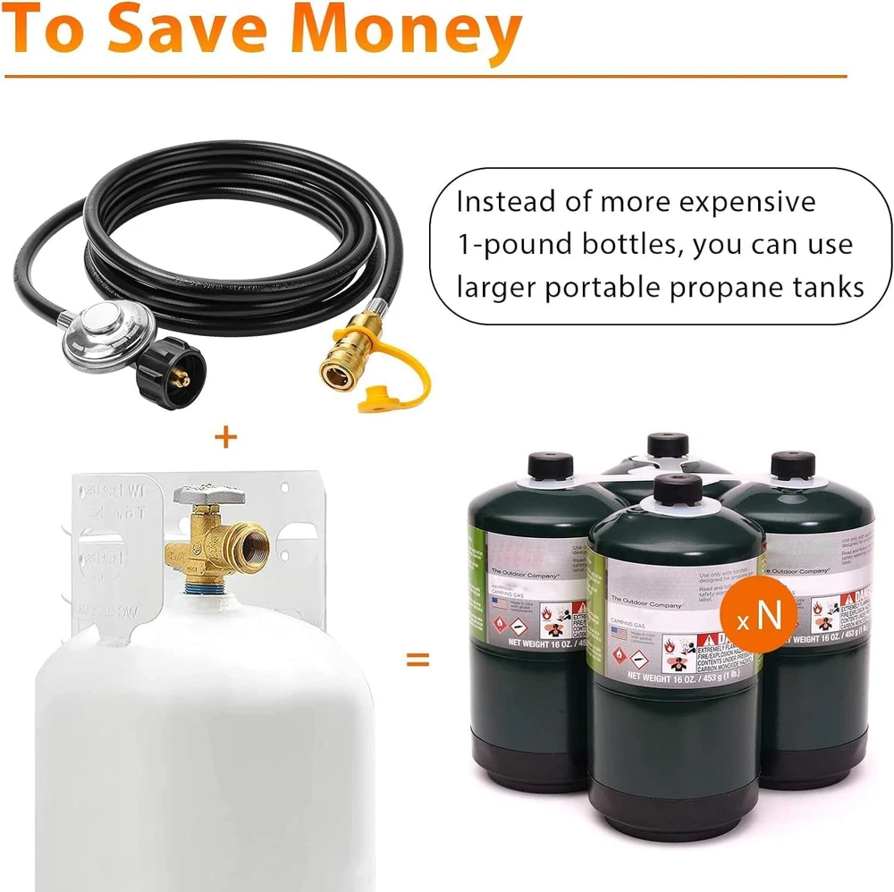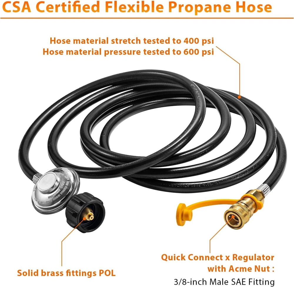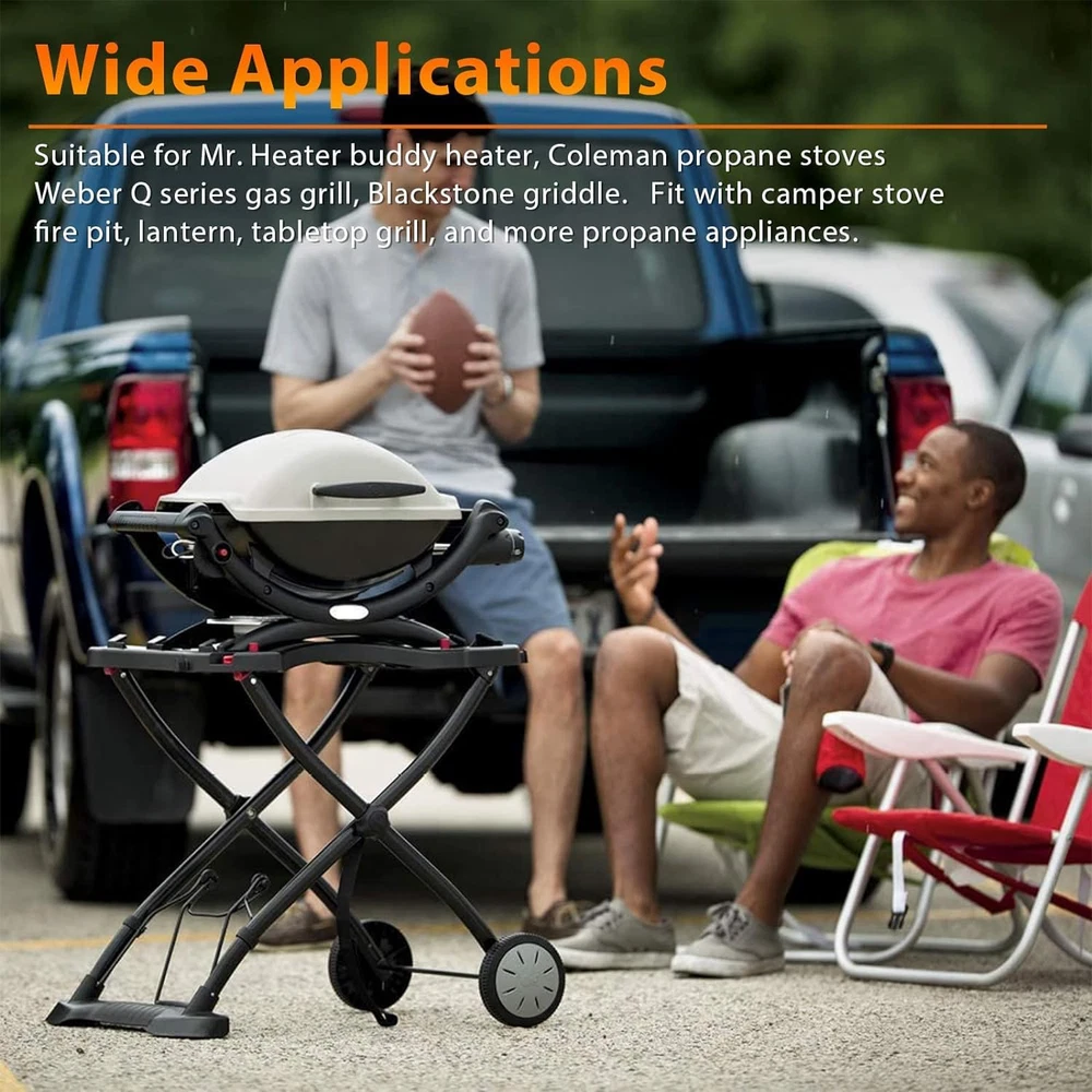 Propane Hose Compatible with Mr Buddy Heater Hose:The buddy heater hose assembly for use with Mr Heater f271803 Buddy adapter hose,for F274830 Big Buddy indoor/outdoor heater. POL is attached directly to a 5-20 pound propane tank. 12 ft. buddy-series hose assembly connects appliances that are designed to be connected to a 1 to 20 lb propane tank, Type 1 Connection x Quick Connect Fittings Ideal Replacement for Mr Heater Buddy Hose: When you don't want to use a 1 pound tank gas cylinder and save money, Our replacement for Mr Heater Buddy hose will be your best choice. 12 feet propane tank adapter hose can be used for heaters and more propane equipment. High Quality-Material:Our replacement for Mr Heater Buddy hose adapter accessories is made of high quality rubber and the connector section is made of solid brass for excellent firm connection and durability, ensuring safe and leak-free operation. for Mr Buddy heater hose to propane tank length is long enough to keep the propane tanks at a safe distance. Easy to Install :The propane adapter hose for Buddy Heater is directly connected to the propane tank and can be connected to the propane tank without tools. The portable for Buddy Heater hose provides sufficient length and is safe. If you have any questions about our replacement for Mr. Heater Buddy propane heater hose, Please note that we are always here to help. Please contact us.If don't fit for you heater or have other problems, please contact us at the first time, we will solve the problem for you
