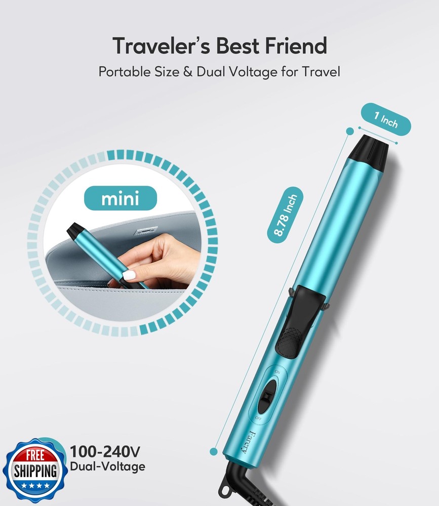 FARERY Travel Size Mini Curling Iron, Dual Voltage 1 Inch Ceramic Mini Hair Curler, Travel Curling Iron for Short Hair Infused with Keratin and Argan Oil, with Storage Bag Features [Worldwide Dual Voltage & Portable Size] The Farery travel hair curler is designed with a dual voltage of 100-240V enabling travelers to carry it with worldwide travel(just need a power adapter). With only 8.78 inch length & 0.38lb weight, which is compact&portable and can easily fit in any bag or purse without needing to sacrifice the space for other necessities [1Inch Barrel For Short&Medium&Long Hair] Farery travel curling iron mini with 1 inch barrel get close to hair root easily and grip hair well, which is the perfect size to give some volume with a short style cut. For Short hair, it could be used as a small clamp curling iron, also, it could be used as a wand for Medium&long hair as well [Up To 392℉ & Anti-Scald Design] Farery dual voltage curling iron travel size is preset to the optimum styling temperature of 392°F, which meets the styling temperature needs of most hair textures. Small but complete in every detail. The 0.78-inch extra-long (compared to its mini size) tapered cool tip could prevent any potential burn effectively. Also, the safety stand could prevent burning tabletop [Easy To Use & Get Shiny Long Lasting Curls] Farery ceramic travel curling wand with Keratin, Argan oil & Tourmaline infused the ceramic barrel, releasing millions of nourishing properties negative ions providing ultra-shiny and more polished curls. The ceramic barrel distributes heat evenly to prevent damage and disperse negative ions which keep hair smooth and shiny [Perfect For Home & Travel Use] FARERY dual voltage travel curling iron with a 6.5ft extra long & 360°swivel cord provides tangle-free styling; also, the accessory comes with a travel storage bag, be ready for your worldwide travel Shipping Free & Fast Shipping: We offer free shipping to most of the USA with a normal delivery time of 3-7 days. However, due to the current situation, additional delivery time (up to 3 weeks) may be required for some items. Alternative Carriers: We may use alternative carriers (e.g., USPS, FedEx, UPS) to ensure your package arrives safely and on time. Due to the use of multiple carriers, we are unable to provide a tracking number automatically. Handling Time: Orders are processed and shipped within 1-2 business days of receiving cleared payment. Shipping Restrictions: Shipping to Alaska, Hawaii, Puerto Rico, Guam, and other US territories may incur shipping charges or delivery restrictions. Please contact us before ordering, or your order can be refunded/cancelled. State Restrictions: Certain items may not be shipped to California due to state regulations. Contact for Tracking Updates: If you require tracking updates or have any concerns about the delivery of your order, please feel free to contact us, and we will be happy to assist you. Return Policy 30-Day Hassle-Free Returns: If you are not completely satisfied with your purchase, you can return the item for free within 30 days of receiving it for a full refund or exchange. Easy Return Process: Contact us, and we will provide you with a prepaid return shipping label and detailed instructions. No Restocking Fee: There are no restocking fees for returns. However, the buyer is responsible for return shipping costs if the return is not due to a seller"s error. Refund Processing: Refunds will be processed within 1 business day of receiving the returned item in its original condition. Feedback Your feedback is extremely important to us. We strive to provide the best products and customer service possible. If you are satisfied with your purchase, please take a moment to leave us a positive review. If you have any concerns or issues with your order, please contact us before leaving negative feedback. We are committed to resolving any problems and ensuring your satisfaction. Contact Us If you have any questions or concerns, please feel free to reach out to our customer support team. You can contact us through the eBay messaging system. We are available Monday to Friday, 9:00 am to 5:00 pm EST, and we will do our best to respond to your inquiry within 24 hours. Thank you for supporting our small family business!